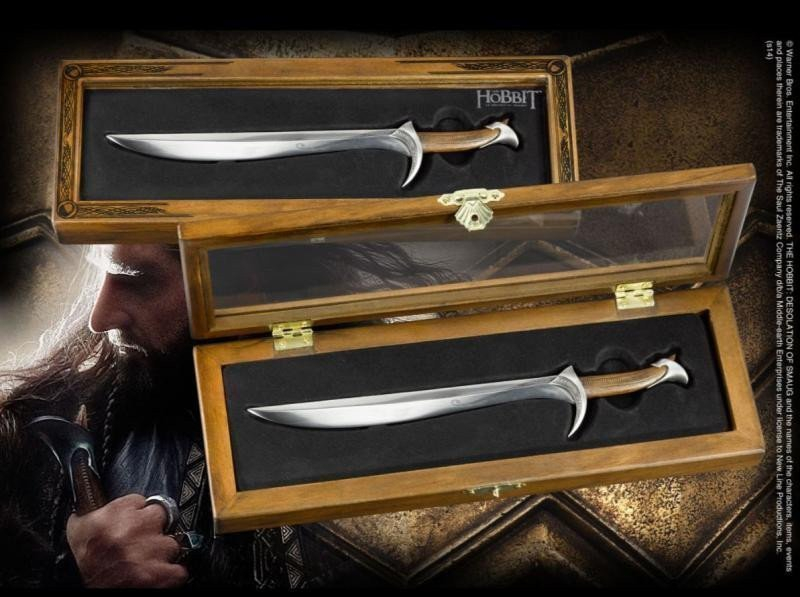 Zmenšená replika Thorinova meče (Orkrist) z filmového zpracování Tolkienova Hobita. Nůž je dlouhý 20,5 cm a jeho součástí je dřevěná krabička o rozměrech 31x13 cm. Velice detailně zpracovaná replika, která potěší všechny fanoušky Hobita a Thorina Pavézy.
