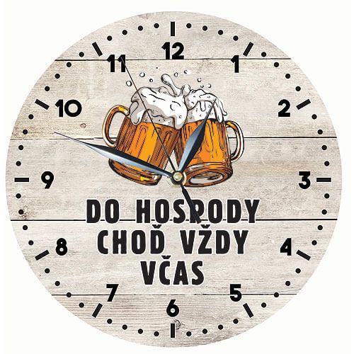 Hodiny - Do hospody choď vždy včas - dřevo.Dřevěné hodiny 24 cm – do hospody včas SKU: BC190362 Dřevěné hodiny s potiskem pro muže pivaře - do hospody choď vždy včas. Dřevěné hodiny jsou krásný dárek pro muže a pěkná dekorace k zavěšení do kuchyně, kanceláře nebo pracovny.