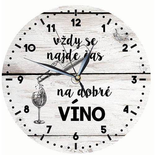 Hodiny - Vždy se najde čas na dobré víno - dřevo.Dřevěné hodiny 24 cm – čas na víno SKU: BC190361 Dřevěné hodiny s potiskem pro milovníky vína - vždy se najde čas na dobré víno. Dřevěné hodiny jsou krásný dárek a pěkná dekorace k zavěšení do vinného sklepa, kuchyně, kanceláře nebo pracovny.
