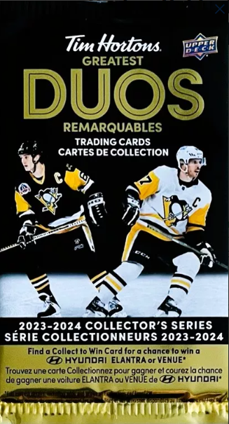3 karty v balíčkuV každém balíčku průměrně naleznete:1x insertní kartu2x řadovou kartuNová kolekce karet Tim Hortons Greatest Duos upozorňuje na některé z nejznámějších a nejzajímavějších dvojic v historii tohoto sportu. I na řadových kartách naleznete vždy 2 hráče (první vpředu, druhý vzadu)V této sérii najdete celkem 180 sběratelských karet rozdělených do 7 subsetů.Set Linked By Numbers zahrnuje celkem 15 hráčských dvojic. Každá karta obsahuje pár legendárních hráčů, kteří se zapsali do historie hokeje díky spolupráci na ledě a vynikajícím výkonům.Můžete očekávat, že najdete takové pozoruhodné dvojice jako Wayne Gretzky/Connor McDavid, Jean Béliveau/Henri Richard nebo Sidney Crosby/Evgeni Malkin, abychom jmenovali alespoň některé. Každá karta je ilustrována ikonickým obrázkem dua v akci, doplněným klíčovými statistikami, nejdůležitějšími body kariéry a zajímavými fakty o jejich partnerství na ledě.V séri můžete nalézt dokonce i podespané karty! V setu doplněny také ikony ženského hokeje.Insertní karty: Linked By Numbers 1:3 balíčkůmFamily Foundations 1:4Rookie Connection 1:6Rink Rivals 1:8Captains 1:24Bounded By Honor 1:100Redemption a podepsané karty:Duo Autographs 1:7200 (920 ks karet celkem)Duo Autographs Crosby/MacKinnon 1:87350 (75 karet celkem)Duo Autographs Tkachuk Brothers (25 karet celkem)1 Brand new 2024 SUV1 Meet and Greet Nick Suzuki in MontrealPlus mnoho dalších Tim Hortons karet.. Zakupte produkt Hokejové Karty 2023-24 Upper Deck Tim Hortons Greatest Duos Hockey Hobby Balíček z kategorie Produkty NHL od výrobce Upper Deck za cenu 79,00 Kč.
