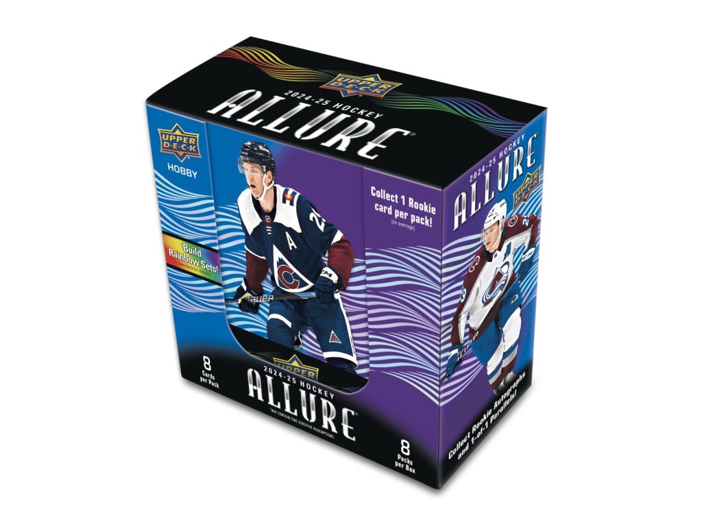 8 balíčků v boxu/8 karet v balíčkuKAŽDÝ BOX PRŮMĚRNĚ OBSAHUJE:- 1x podepsanou anebo Doubloons kartu- 2x Printing Plates/limitovanou kartu anebo kartu s nízkým poměrem vkládání- 8x Black Rainbow, Red Rainbow a/nebo Orange Slice základní paralelní kartu (včetně Rookies)- 8x základní Rookie kartu (1x v každém v balíčku)- 13x Color Flow, Across the Pond, Colorful Futures nebo Protectors of the Ice kartuSérie, která nabízí velké množství povedených paralelních verzi v kombinaci s podpisy a spoustu limitovaných karet, je opět zde.Tato edice přináší pro každého sběratele něco! Allure se vrací se 150-kartovým základním setem, který obsahuje 100 současných hráčů (veteránů) a 50 nováčků – základní Rookie karta se vyskytuje průměrně v každém balíčku.Hledejte spoustu paralelních verzí - od Black Rainbow, Red Rainbow, Red Rainbow Auto a Orange Slice až po vzácné 1-of-1 Golden Treasures a 1-of-1 Golden Treasures Auto. Produkt také obsahuje Base Set Printing Plates 1/1. Najdi v průměru jednu Black Rainbow, Red Rainbow nebo Orange Slice veteránskou či RC paralelní kartu v každém balíčku.Podívej se na kompletní sestavu paralelních karet v sekci „Produkt obsahuje“ níže!Upozorňujeme, že pouze paralelní karty Black Rainbow a Red Rainbow Auto pokrývají celý base set. VÍCE RAINBOW KARET!Krásný a populární insertní set Color Flow se vrací s úžasným novým designem a rozšířeným checklistem plným hvězd (včetně několika budoucích legend) s několika nováčky. S checklistem rozšířeným na 60 hráčů si fanoušci mohou sestavit téměř dvojnásobný počet rainbow setů než v předchozích sezónách! Rainbow set získáte sesbíráním těchto verzí: Color Flow Red-Orange, Orange-Yellow, Yellow-Green, Green-Blue a Blue-Purple. V každém boxu se nachází v průměru 7 Color Flow karet, takže sestavení rainbow setů je relativně snadné! Zlato na konci duhy! Své pětikaretní rainbow sety můžete doplnit limitovanou kartou 1-of-1 Color Flow - Golden Treasures!Skvělým hitem jsou limitované Spectrum paralelní karty, které zahrnují Orange-Yellow (limitované do /199), Red-Orange (/150) a Blue-Purple (/25). Ano, pouze 25 kompletních Spectrum paralelních setů může být sestaveno! Každý, kdo získá variantu Blue-Purple, bude vlastnit velmi cenou kartu! Zejména v případě těch největších hvězd a nejlepších nováčků! Color Flow Autos! K dispozici je také Full Rainbow Auto - podepsaná karta, která obsahuje všech šest barev. Checklist tohoto setu je širší, díky většímu počtu nováčků. OBLÍBENÉ INSERTNÍ KARTY SE VRACÍ!Velmi populární inserty 16-Bit a Doubloons jsou zpět s novým designem.Velmi vzácný a možná až nečekaně populární set 16-Bit obsahuje mix aktivních hvězd (žádná z nich se v tomto setu dosud neobjevila) a nováčků, zatímco set Doubloons obsahuje mix aktivních hvězd, top nováčků a legend NHL. Pro některé veterány a legendy půjde o jejich první Doubloons kartu! Obě karty jsou zároveň velmi cennými kousky, zejména karty 16-bit jsou v případě těch nejlepších jmen extrémně hodnotné. Zejména Jaromír Jágr bude nejspíše skvělou trefou!!! NOVINKY! Nejnovější ročník Allure přináší zajímavou sestavu nových insertních karet! Zde si je představíme: Impressions: tyto jasné a barevné karty s uměleckým zobrazením hráčů jsou extrémně vzácné. V setu pouze 10 hráčů – jen ty největší hvězdy (McDavid, Makar, Ovechkin...).Across the Pond: checklist obsahuje pouze hvězdné hráče narozené mimo Severní Ameriku (Pastrňák, Němec, Draisaitl, Rantanen, Hertl...).Colorful Futures: díky úchvatnému designu a sestavě výhradně z top mladých hvězd se tento set okamžitě stane hitem (na kartách Bedard, Hughes, Boldy, Nečas...).Protectors of the Ice: fanoušci brankářů si zamilují tento set, který představuje několik nejlepších brankářů současné NHL (Hellebuyck, Shesterkin, Demko, Swayman...). Existuje několik paralelních verzí Across the Pond, Colorful Futures a Protectors of the Ice, mezi nimiž vynikají Auto (podepsané), Blue Spectrum (limitované do /50), Purple Spectrum (/25) a Golden Treasures (limitace 1-of-1). Podívej se na kompletní seznam níže.KLÍČOVÍ NOVÁČCI:Macklin Celebrini, Lane Hutson, Matvei Michkov, Will Smith, Logan Stankoven, Cutter Gauthier, Zachary Bolduc, Shakir Mukhamadullin, Rutger McGroarty, Olen Zellweger, Jesper Wallstedt, Brennan Othmann, Frank Nazar, Mavrik Bourque, Joshua Roy, Liam Ohgren, Gavin Brindley, Bradly Nadeau, Jackson Blake, Logan Mailloux, Matt Rempe, Ivan Fedotov, Jonathan Lekkerimaki.CZ a SK HRÁČI V SÉRII:David Pastrňák, Tomáš Hertl, Petr Mrázek, Pavel Zacha, Vítek Vaněček, Jaromír Jágr, Adam Klapka, Šimon Němec, Juraj Slafkovský, Marian Hossa. PRODUKT OBSAHUJE: Rookie podepsané a podepsané Memorabilia karty:Base Set Rookies - Red Rainbow Auto Parallel 1:32Base Set Rookies - Blue Line Auto Parallel limitované do 35Base Set Rookies - Purple Diamond Auto Parallel limitované do 10Base Set Rookies - Golden Treasures Auto Parallel limitace 1-of-1 Podepsané a podepsané Memorabilia karty:NOVINKA! Across the Pond - Auto Parallel 1:400Base Set - Red Rainbow Auto Parallel 1:48Base Set - Blue Line Auto Parallel limitované do 35Base Set - Purple Diamond Auto Parallel limitované do 10Base Set - Golden Treasures Auto Parallel limitace 1-of-1Color Flow - Full Rainbow Auto Parallel 1:24NOVINKA! Colorful Futures - Auto Parallel 1:240NOVINKA! Protectors of the Ice - Auto Parallel 1:360 Insertní karty:16-Bit 1:720NOVINKA! Across the Pond 1:20NOVINKA! Across the Pond - Orange Parallel 1:23NOVINKA! Across the Pond - Green Parallel 1:32NOVINKA! Across the Pond - Blue Parallel 1:40NOVINKA! Across the Pond - Purple Parallel 1:80NOVINKA! Across the Pond - Orange Spectrum Parallel limitované do 199NO