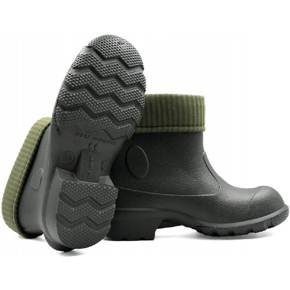 Pánské kotníkové holínky do zahrady Vyrobeno z extra lehkého materiálu EVA Vhodné i do zimních měsíců (materiál testován do –30 °C) Vyjímatelné zateplení ze syntetického materiálu Velmi pohodlné a lehké Certifikát pracovní obuvi CE Velikost 42– váha 612 g