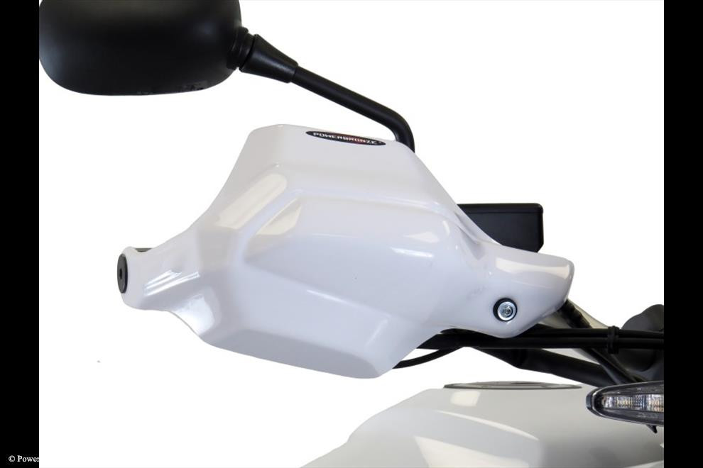 Kvalitní kryty rukou na motorkuod renomované britské značky Powerbronzepředstavují ideální řešení pro jezdce, kteří chtějí zvýšit komfort a ochranu rukou při jízdě na motocyklu. Tyto motocyklové handguardychrání ruce před větrem, chladem, deštěm i drobnými nečistotami z vozovky, což oceníte především při delších jízdách nebo v chladnějším počasí. Jsme výhradním dovozcem Powerbronze, díky čemuž u nás získáte originální produkty této známé britské značky s garancí kvality, kompatibility a dostupnosti náhradních dílů. Ochrana rukou proti větru a počasí Kryty rukou na motocykl jsou jedním z praktických doplňků, které výrazně zvyšují komfort jízdy. Pomáhají omezit proudění vzduchu na ruce jezdce, čímž snižují pocit chladu při vyšších rychlostech. Zároveň chrání ruce před deštěm, hmyzem nebo drobnými kamínky z vozovky. Díky modernímu designu navíc kryty rukou Powerbronzeskvěle doplní vzhled sportovních, naháčových i cestovních motocyklů. Kvalitní materiály a precizní zpracování Motocyklové kryty rukou Powerbronzejsou vyrobeny z odolného ABS plastu, který nabízí ideální kombinaci pevnosti, nízké hmotnosti a dlouhé životnosti. Materiál je zároveň odolný vůči povětrnostním vlivům a běžnému opotřebení při každodenním používání motocyklu. Součástí balení jsou také černé eloxované hliníkové koncovky řídítek Powerbronze, které zajišťují pevné uchycení a zároveň dodávají motocyklu elegantní sportovní vzhled. Snadná montáž Velkou výhodou těchto handguardů na motorkuje velmi jednoduchá instalace. Kryty rukou se montují pomocí dodané montážní sady přímo na řídítka motocyklu. Balení obsahuje také přehledný návod, takže instalaci zvládnete během několika minut.Hlavní výhody krytů rukou Powerbronze ochrana rukou proti větru, dešti a nečistotám větší než standardní chrániče pro vyšší účinnost vyrobeno z odolného ABS plastu černé anodizované hliníkové koncovky řídítek moderní matně černý design jednoduchá a rychlá montáž včetně montážní sady a návodu originální produkt Powerbronze – výhradní dovozce