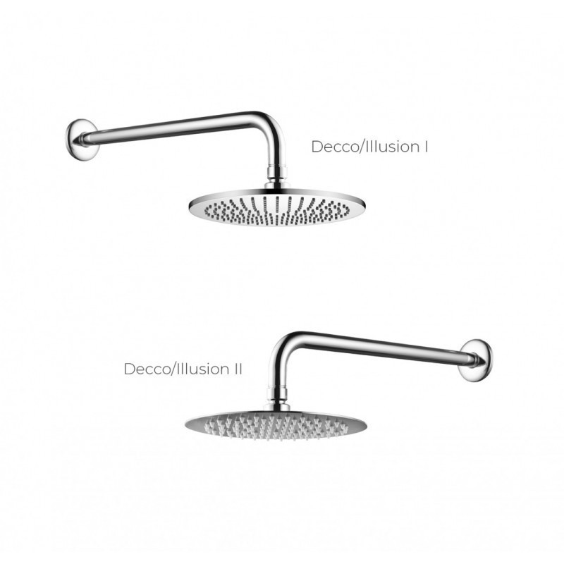 Jedinečný podomítkový set s příslušenství DECCO/ILLUSION I/VEO chrom. Kompletní řešení pro váš sprchový kout. Set obsahuje podomítkovou baterii, hlavovou sprchu s držákem, vývod ze stěny s držákem, ruční sprchu a hadici. Baterie je dodávána včetně podomítkového modulu, ten výrazně usnadňuje montáž. Dodáváme v šesti barvách a to lesklý chrom, černá, grafitová, zlatá, zlatá lesklá, zlatá broušená.Součástí balení je podomítková baterie DECCO/ILLUSION I/VEO + podomítkový montážní box + ruční sprcha + sprchová hadice + vývod a držák ruční sprchy + hlavová sprcha s držákem. Přednosti podomítkové baterie DECCO/ILLUSION I/VEO chrom: Podomítková baterie s příslušenstvím Barva: chrom Elegantní klasika Anti line aretator (proti usazování vodního kamene) Provedení: pochromovaný kov, černá matná, zlatá Moderní perlátor Keramická kartuše Prověřená technologie Pákové ovládání baterie Vše testováno se 100% úspěšností Všechny díly odpovídají předpisům EN817 Včetně podomítkového modulu Set obsahuje podomítkovou baterii, hlavovou sprchu s držákem, vývod ze stěny s držákem, ruční sprchu a hadici ZÁRUKA 5 LET