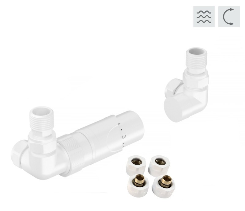 Universální termostatická (pravý i levý) sada PRIME je určen pro napojení koupelnových radiátorů s rohovým vývodem (tzv. na rozteč). Ventil je určen pro připojení radiátorů na rozvody TUV s vývodem ze zdi. Sada je včetně svěrného šroubení Ø 15x1 (Cu) a Ø 16x2 (Alpex). Přívod je vždy na straně termostatické hlavice. Ventil dodáváme ve třech barevných variantách (chrom, bílá a černá barva). Ventil je určen pro připojení radiátorů na rozvody TUV s vývodem ze zdi. Do ventilu nelze instalovat elektrickou topnou tyč. Technické parametry: Univerzální provedení (levé i pravé) Maximální pracovní teplota: 120 °C Maximální pracovní tlak: 10 bar Montáž na Alpex trubky 16 x 2 i na Cu15 mm Termostatická hlavice, typ RAY, kapalina Připojení: M30x1,5 Maximální teplota okolí: 50 °C Regulačních stupňů: 5 Rozsah regulace: 6 - 28 °C Ochrana proti mrazu: 6 °C Kompletní sada obsahuje: 1× ventil (univerzální proveden) 1× termostatickou hlavici 2× redukci 1/2, 3/4“ 2× svěrnou spojku Cu 15 × 1 mm / PEX-AL-PEX 16 × 2 mm Dostupné barvy ventilu PRIME: chrom lesklý černá bílá ZÁRUKA 2 ROKY