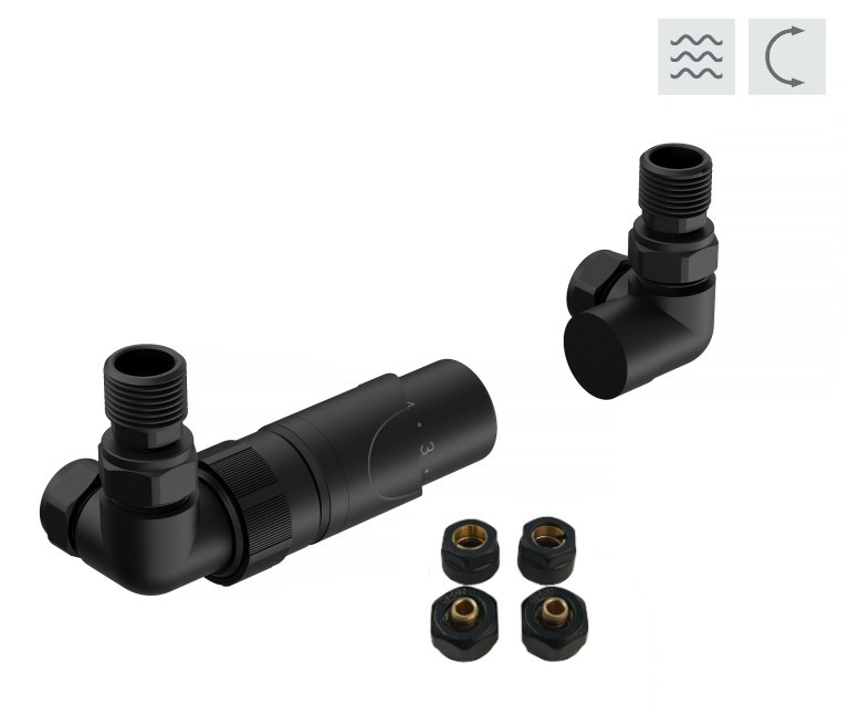 Universální termostatická (pravý i levý) sada PRIME je určen pro napojení koupelnových radiátorů s rohovým vývodem (tzv. na rozteč). Ventil je určen pro připojení radiátorů na rozvody TUV s vývodem ze zdi. Sada je včetně svěrného šroubení Ø 15x1 (Cu) a Ø 16x2 (Alpex). Přívod je vždy na straně termostatické hlavice. Ventil dodáváme ve třech barevných variantách (chrom, bílá a černá barva). Ventil je určen pro připojení radiátorů na rozvody TUV s vývodem ze zdi. Do ventilu nelze instalovat elektrickou topnou tyč. Technické parametry: Univerzální provedení (levé i pravé) Maximální pracovní teplota: 120 °C Maximální pracovní tlak: 10 bar Montáž na Alpex trubky 16 x 2 i na Cu15 mm Termostatická hlavice, typ RAY, kapalina Připojení: M30x1,5 Maximální teplota okolí: 50 °C Regulačních stupňů: 5 Rozsah regulace: 6 - 28 °C Ochrana proti mrazu: 6 °C Kompletní sada obsahuje: 1× ventil (univerzální proveden) 1× termostatickou hlavici 2× redukci 1/2, 3/4“ 2× svěrnou spojku Cu 15 × 1 mm / PEX-AL-PEX 16 × 2 mm Dostupné barvy ventilu PRIME: chrom lesklý černá bílá ZÁRUKA 2 ROKY