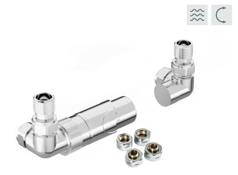 Universální termostatická (pravý i levý) sada PRIME je určen pro napojení koupelnových radiátorů s rohovým vývodem (tzv. na rozteč). Ventil je určen pro připojení radiátorů na rozvody TUV s vývodem ze zdi. Sada je včetně svěrného šroubení Ø 15x1 (Cu) a Ø 16x2 (Alpex). Přívod je vždy na straně termostatické hlavice. Ventil dodáváme ve třech barevných variantách (chrom, bílá a černá barva). Ventil je určen pro připojení radiátorů na rozvody TUV s vývodem ze zdi. Do ventilu nelze instalovat elektrickou topnou tyč. Technické parametry: Univerzální provedení (levé i pravé) Maximální pracovní teplota: 120 °C Maximální pracovní tlak: 10 bar Montáž na Alpex trubky 16 x 2 i na Cu15 mm Termostatická hlavice, typ RAY, kapalina Připojení: M30x1,5 Maximální teplota okolí: 50 °C Regulačních stupňů: 5 Rozsah regulace: 6 - 28 °C Ochrana proti mrazu: 6 °C Kompletní sada obsahuje: 1× ventil (univerzální proveden) 1× termostatickou hlavici 2× redukci 1/2, 3/4“ 2× svěrnou spojku Cu 15 × 1 mm / PEX-AL-PEX 16 × 2 mm Dostupné barvy ventilu PRIME: chrom lesklý černá bílá ZÁRUKA 2 ROKY