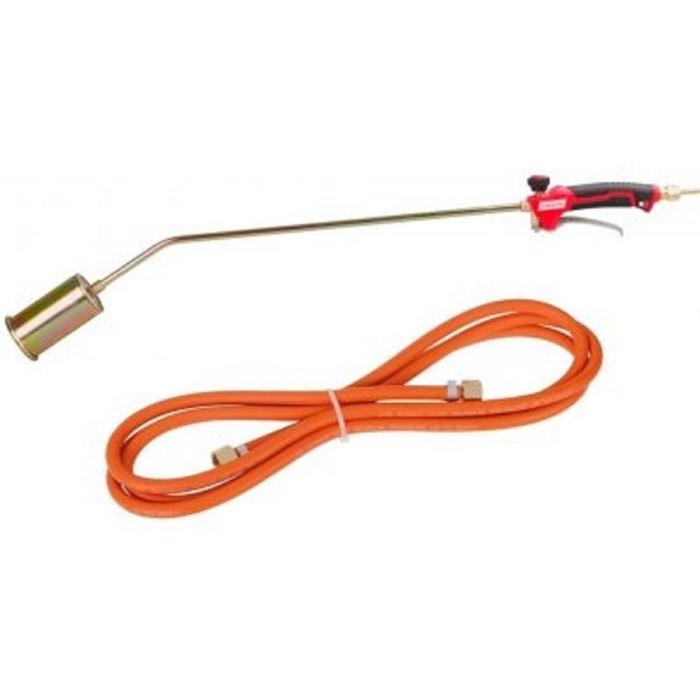 Hořák na PB 55 x 850 mm s hadicí 3m + regulátor Hořák na propan-butan (PB) o rozměrech 55 x 850 mm s 3 metrovou hadicí a regulátorem je nástroj určený pro použití v různých řemeslných a stavebních pracích. Vlastnosti a použití: Rozměry a výkon: Rozměry hořáku 55 x 850 mm udávají velikost hořáku. Výkon hořáku se může lišit v závislosti na modelu, ale často se pohybuje kolem 35 kW nebo 60kW. Použití: Opalování a nahřívání materiálů. Pájení. Nahřívání asfaltových pásů. Odstraňování starých nátěrů. Sada obsahuje: Hořák na PB. 3 metrovou hadici. Regulátor tlaku. Důležité vlastnosti: Bezpečnost: Vždy používejte hořák s regulátorem tlaku a certifikovanou hadicí. Při práci s hořákem dodržujte bezpečnostní pokyny. Ergonomická rukojeť pro lepší uchopení. Regulace: Regulace průtoku plynu.