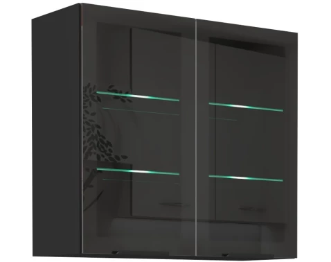 Horní prosklená kuchyňská skříňka o šířce 80 cm z programu Monza v jednoduchém, funkčním a zároveň moderním stylu, v matně černém provedení. Jednotlivé elementy z kuchyňského programu Monza můžete mezi sebou různě kombinovat a sestavit si tak kuchyni podle vašich představ a prostorových možností.
