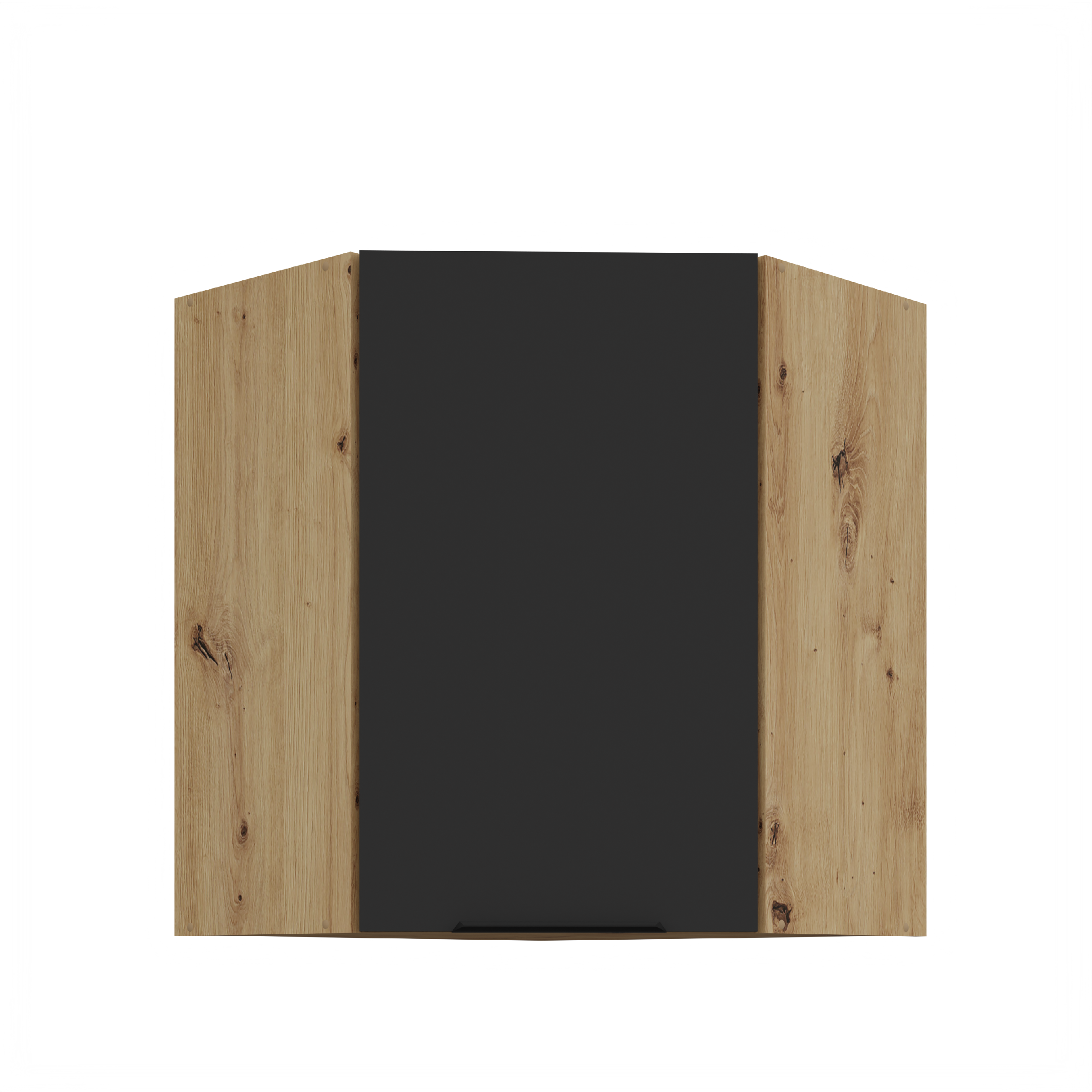Horní rohová skříňka Aria 60x60 GN-72 1F (45°) Vlastnosti: Materiál Laminovaná dřevotřísková deska o síle 16 mm Zakončené hrany ABS hrana o síle 1 mm Anti Finger Print Jedná se o speciální povrchovou úpravu, kdy na povrchu dvířek / čel zásuvek nezůstávají otisky prstů. Úchyt Matný kovový černý úchyt Vnitřní barva Vnitřek skříně je bílý Vnitřní uspořádání Dvě police Panty / Pojezdy Panty s tlumeným zavíráním • Barevné kombinace K dispozici je celkem 15 barevný kombinací - 3 barevné varianty korpusu a 5 barevných variant dvířek. Dub artisan korpus Bílá matná korpus Černá matná korpus BL - Black AFM dvířka / čela zásuvek SA - Aquamarine AFM dvířka / čela zásuvek TA - Sandgrau AFM dvířka / čela zásuvek GR - Graphite AFM dvířka / čela zásuvek WH - Crystal white AFM dvířka / čela zásuvek • Rozměry:Šířka:60x60 cmVýška:71,5 cmHloubka:31 cmPočet balení:2 krabice • Odkazy na příslušenství ke kuchyňským linkámKompletní nabídka skříněk ke kuchyňské lince AriaPracovní deskyPříslušenství ke kuchyním •