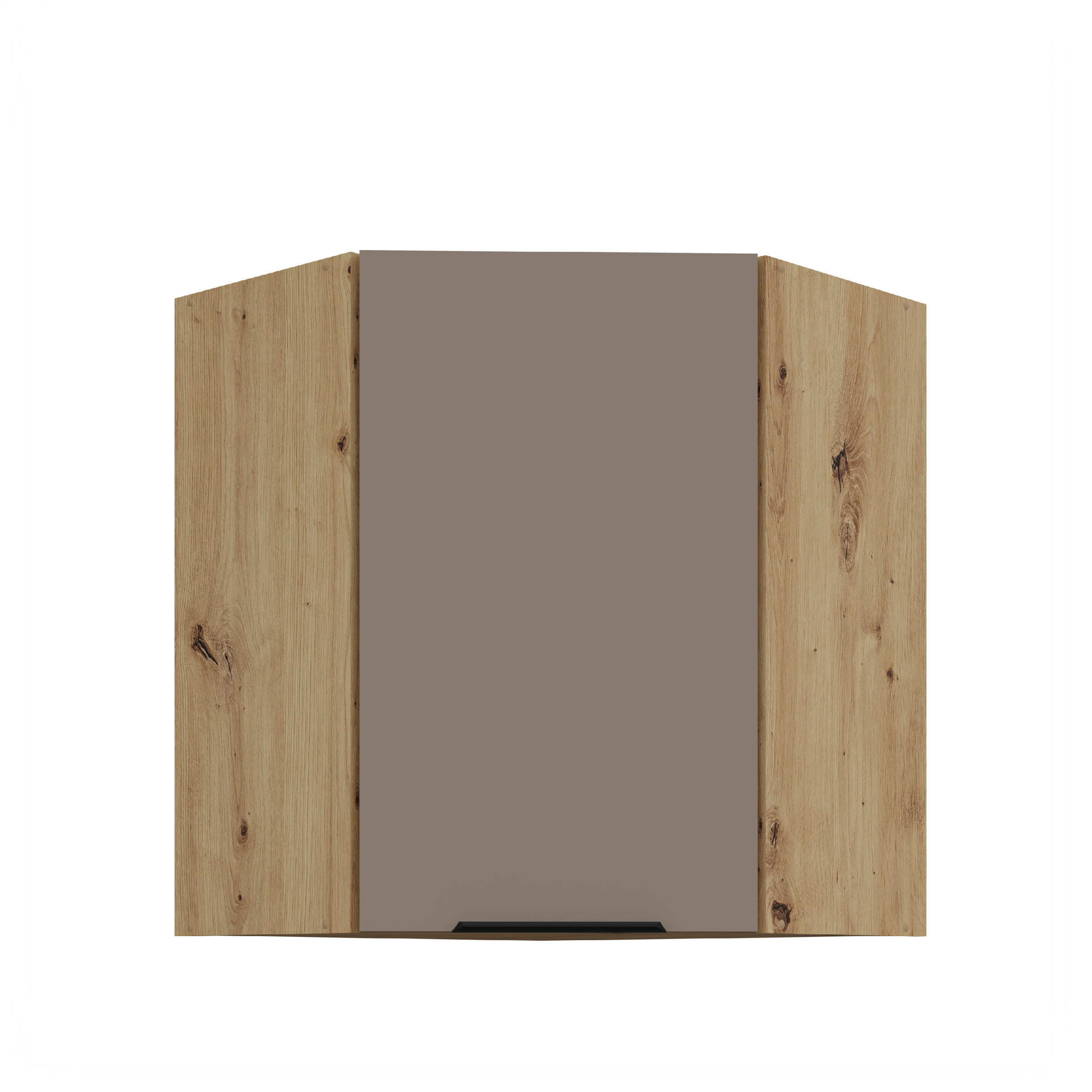 Horní rohová skříňka Aria 60x60 GN-72 1F (45°) Vlastnosti: Materiál Laminovaná dřevotřísková deska o síle 16 mm Zakončené hrany ABS hrana o síle 1 mm Anti Finger Print Jedná se o speciální povrchovou úpravu, kdy na povrchu dvířek / čel zásuvek nezůstávají otisky prstů. Úchyt Matný kovový černý úchyt Vnitřní barva Vnitřek skříně je bílý Vnitřní uspořádání Dvě police Panty / Pojezdy Panty s tlumeným zavíráním • Barevné kombinace K dispozici je celkem 15 barevný kombinací - 3 barevné varianty korpusu a 5 barevných variant dvířek. Dub artisan korpus Bílá matná korpus Černá matná korpus BL - Black AFM dvířka / čela zásuvek SA - Aquamarine AFM dvířka / čela zásuvek TA - Sandgrau AFM dvířka / čela zásuvek GR - Graphite AFM dvířka / čela zásuvek WH - Crystal white AFM dvířka / čela zásuvek • Rozměry:Šířka:60x60 cmVýška:71,5 cmHloubka:31 cmPočet balení:2 krabice • Odkazy na příslušenství ke kuchyňským linkámKompletní nabídka skříněk ke kuchyňské lince AriaPracovní deskyPříslušenství ke kuchyním •