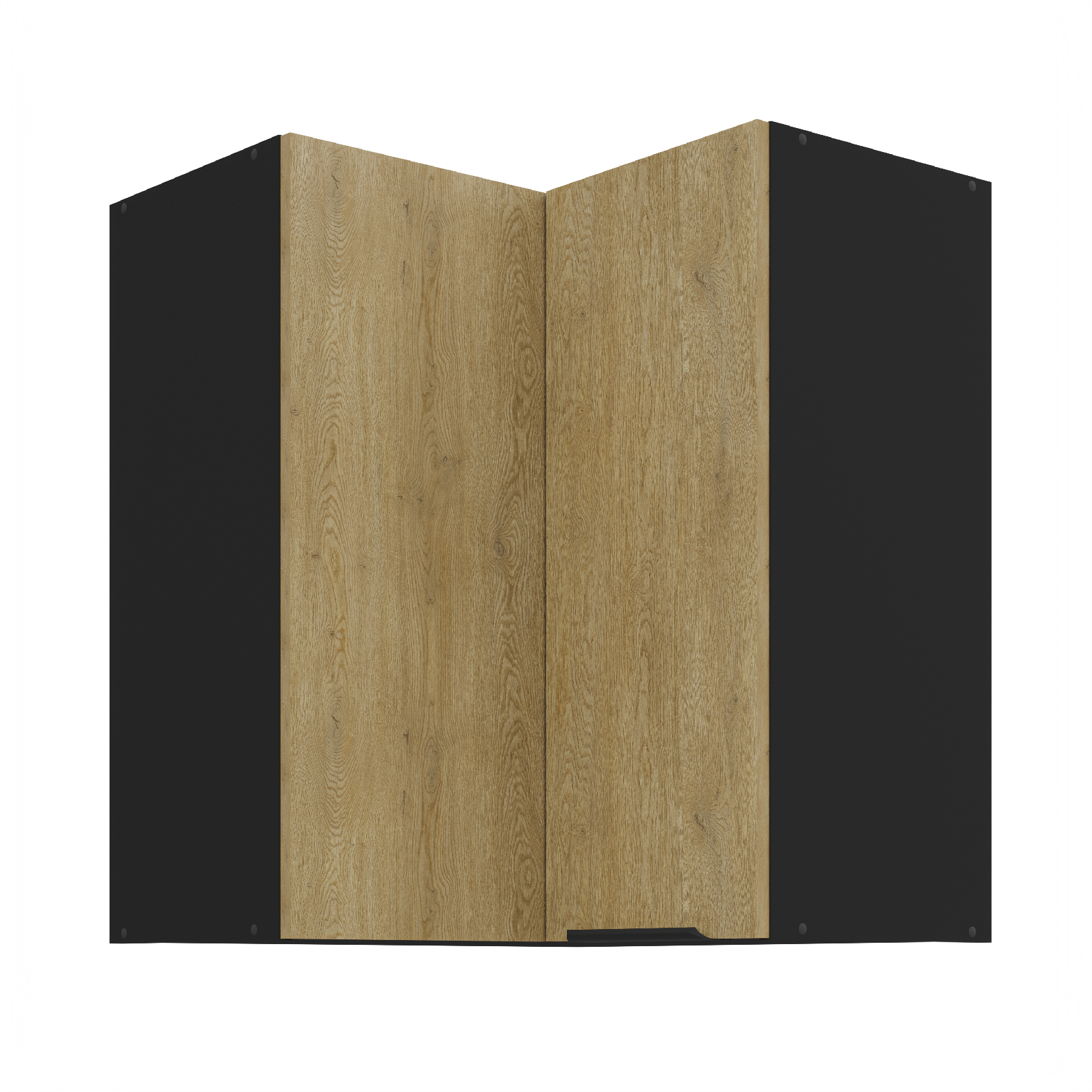 Horní rohová skříňka Cremona 60x60 GN-72 2F (90°) Vlastnosti: Materiál Laminovaná dřevotřísková deska o síle 16 mm Zakončené hrany ABS hrana o síle 1 mm Úchyt Matný kovový černý úchyt Vnitřní barva Vnitřek skříně je bílý Vnitřní uspořádání Dvě police Panty / Pojezdy Panty s tlumeným zavíráním • Barevné kombinace Černá a Dub Cremona Korpus a dvířka Bílá a Dub Cremona Korpus a dvířka • Rozměry:Šířka:60 x 60 cmVýška:72 cmHloubka:31 cmPočet balení:2 krabice • Odkazy na příslušenství ke kuchyňským linkámKompletní nabídka skříněk ke kuchyňské lince CremonaPracovní deskyPříslušenství ke kuchyním •