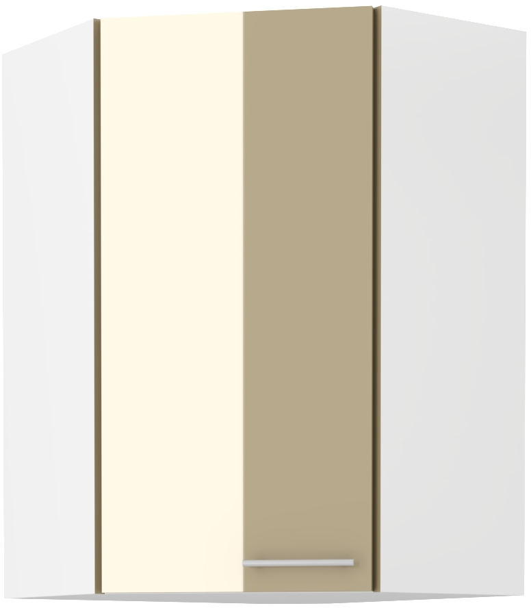 Domů Nábytek Kuchyně Kuchyňské linky Horní rohová skříňka Lara 60x60 GN-90 1F (45°) Barva korpusu: Bílá, Barva dvířek: Cappucino lesk