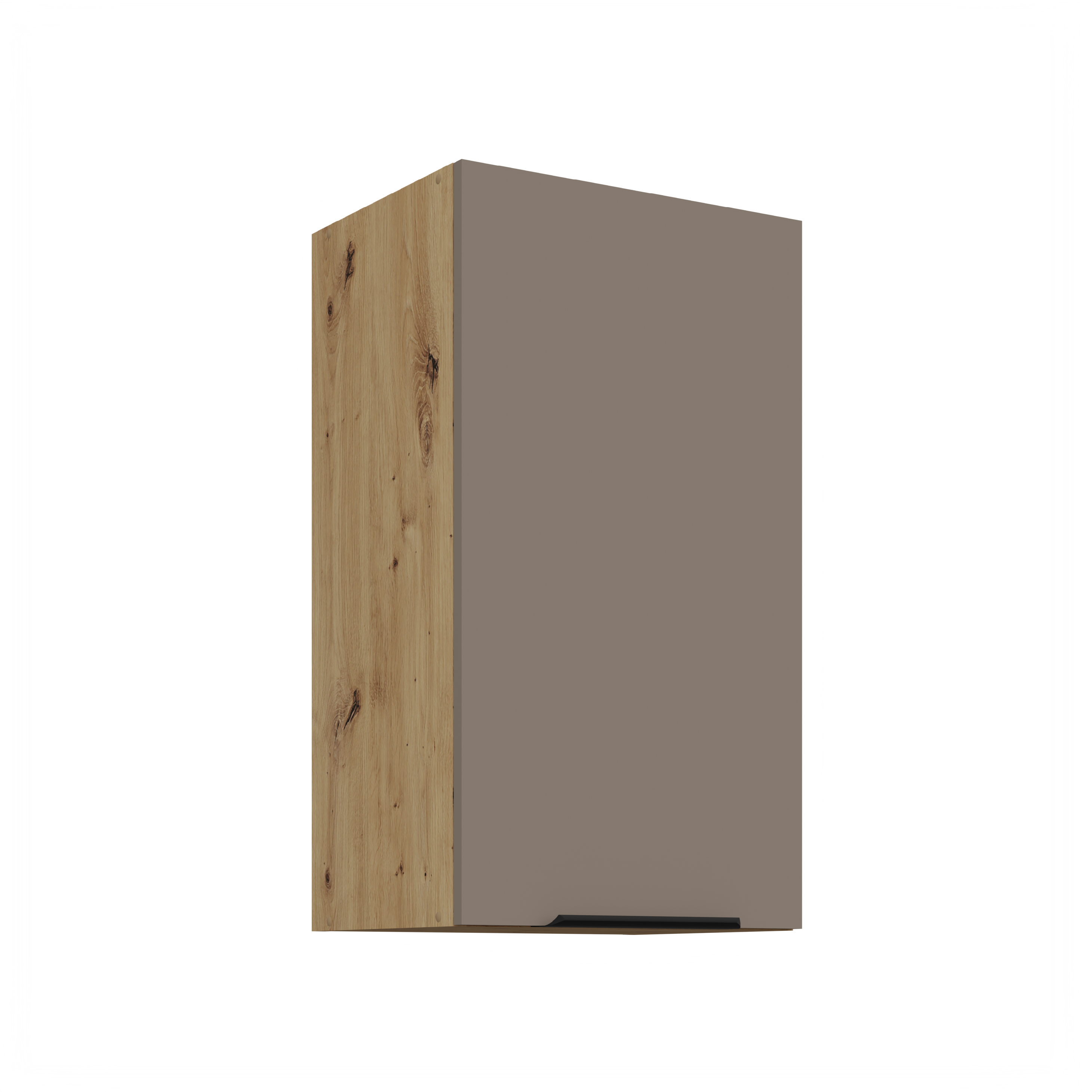 Horní skříňka Aria 40 G-72 1F Vlastnosti: Materiál Laminovaná dřevotřísková deska o síle 16 mm Zakončené hrany ABS hrana o síle 1 mm Anti Finger Print Jedná se o speciální povrchovou úpravu, kdy na povrchu dvířek / čel zásuvek nezůstávají otisky prstů. Úchyt Matný kovový černý úchyt Vnitřní barva Vnitřek skříně je bílý Vnitřní uspořádání Dvě police Panty / Pojezdy Panty s tlumeným zavíráním • Barevné kombinace K dispozici je celkem 15 barevný kombinací - 3 barevné varianty korpusu a 5 barevných variant dvířek. Dub artisan korpus Bílá matná korpus Černá matná korpus BL - Black AFM dvířka / čela zásuvek SA - Aquamarine AFM dvířka / čela zásuvek TA - Sandgrau AFM dvířka / čela zásuvek GR - Graphite AFM dvířka / čela zásuvek WH - Crystal white AFM dvířka / čela zásuvek • Rozměry:Šířka:40 cmVýška:71,5 cmHloubka:31 cmPočet balení:2 krabice • Odkazy na příslušenství ke kuchyňským linkámKompletní nabídka skříněk ke kuchyňské lince AriaPracovní deskyPříslušenství ke kuchyním •