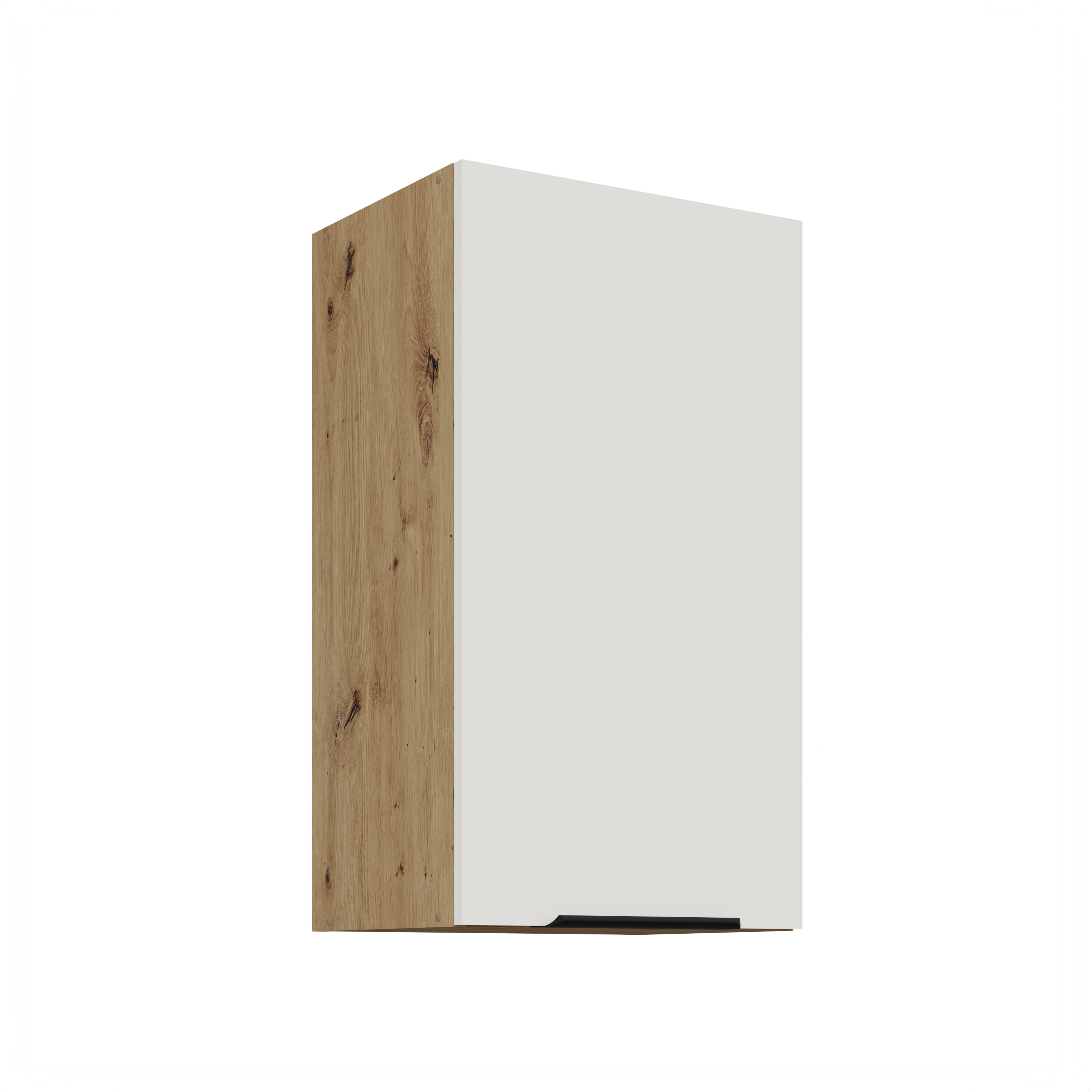 Horní skříňka Aria 40 G-72 1F Vlastnosti: Materiál Laminovaná dřevotřísková deska o síle 16 mm Zakončené hrany ABS hrana o síle 1 mm Anti Finger Print Jedná se o speciální povrchovou úpravu, kdy na povrchu dvířek / čel zásuvek nezůstávají otisky prstů. Úchyt Matný kovový černý úchyt Vnitřní barva Vnitřek skříně je bílý Vnitřní uspořádání Dvě police Panty / Pojezdy Panty s tlumeným zavíráním • Barevné kombinace K dispozici je celkem 15 barevný kombinací - 3 barevné varianty korpusu a 5 barevných variant dvířek. Dub artisan korpus Bílá matná korpus Černá matná korpus BL - Black AFM dvířka / čela zásuvek SA - Aquamarine AFM dvířka / čela zásuvek TA - Sandgrau AFM dvířka / čela zásuvek GR - Graphite AFM dvířka / čela zásuvek WH - Crystal white AFM dvířka / čela zásuvek • Rozměry:Šířka:40 cmVýška:71,5 cmHloubka:31 cmPočet balení:2 krabice • Odkazy na příslušenství ke kuchyňským linkámKompletní nabídka skříněk ke kuchyňské lince AriaPracovní deskyPříslušenství ke kuchyním •