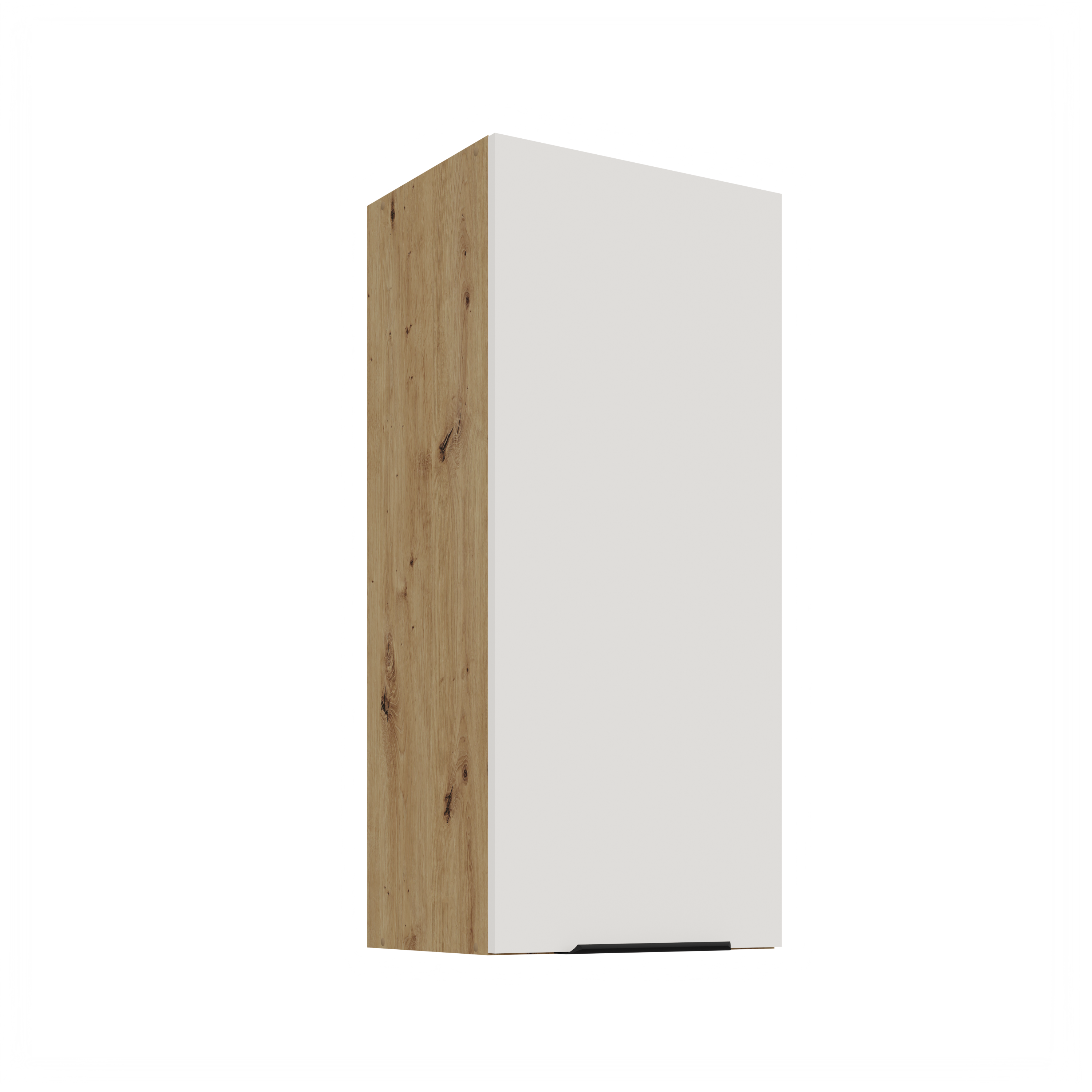 Horní skříňka Aria 40 G-90 1F Vlastnosti: Materiál Laminovaná dřevotřísková deska o síle 16 mm Zakončené hrany ABS hrana o síle 1 mm Anti Finger Print Jedná se o speciální povrchovou úpravu, kdy na povrchu dvířek / čel zásuvek nezůstávají otisky prstů. Úchyt Matný kovový černý úchyt Vnitřní barva Vnitřek skříně je bílý Vnitřní uspořádání Tři police Panty / Pojezdy Panty s tlumeným zavíráním • Barevné kombinace K dispozici je celkem 15 barevný kombinací - 3 barevné varianty korpusu a 5 barevných variant dvířek. Dub artisan korpus Bílá matná korpus Černá matná korpus BL - Black AFM dvířka / čela zásuvek SA - Aquamarine AFM dvířka / čela zásuvek TA - Sandgrau AFM dvířka / čela zásuvek GR - Graphite AFM dvířka / čela zásuvek WH - Crystal white AFM dvířka / čela zásuvek • Rozměry:Šířka:40 cmVýška:90 cmHloubka:31 cmPočet balení:2 krabice • Odkazy na příslušenství ke kuchyňským linkámKompletní nabídka skříněk ke kuchyňské lince AriaPracovní deskyPříslušenství ke kuchyním •