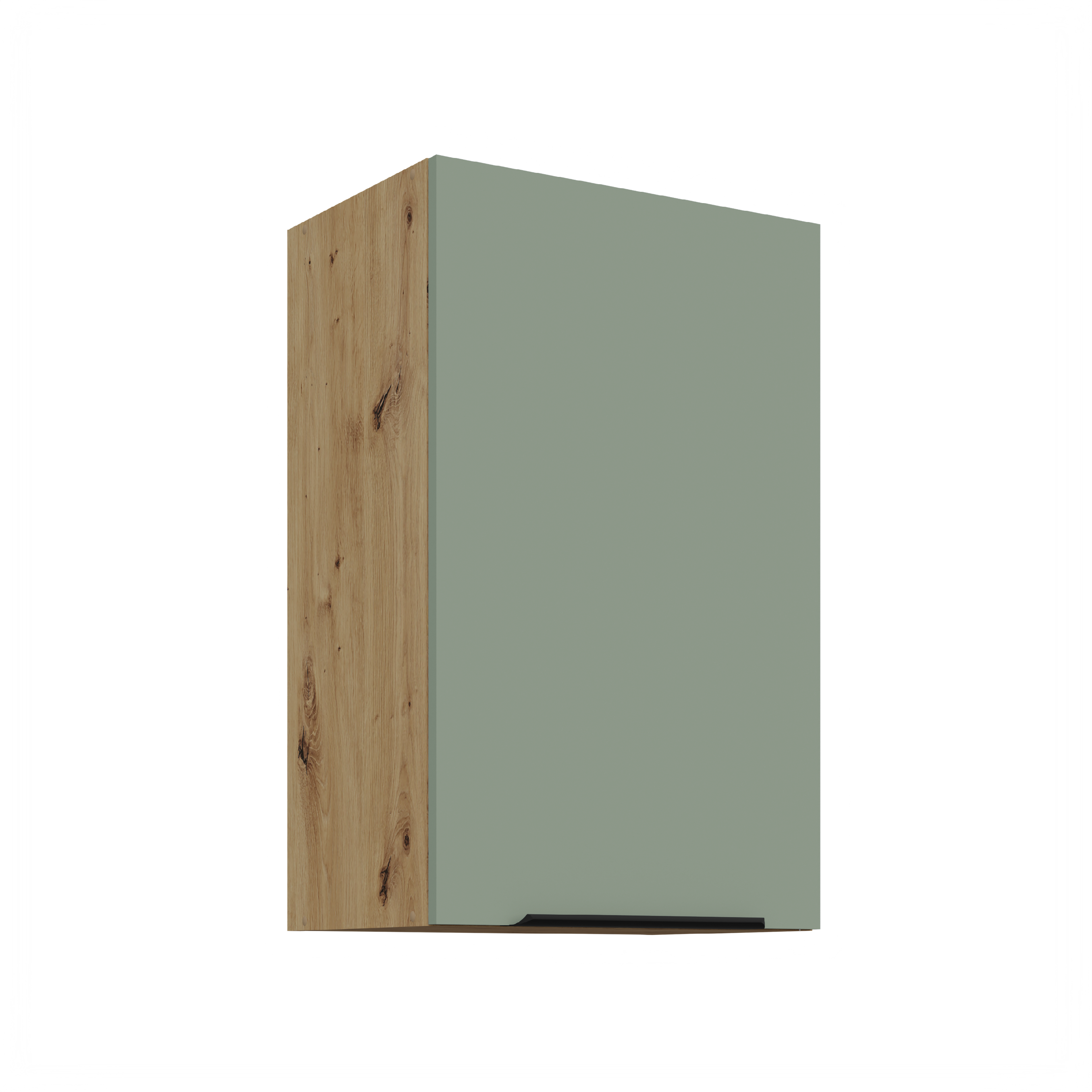 Horní skříňka Aria 45 G-72 1F Vlastnosti: Materiál Laminovaná dřevotřísková deska o síle 16 mm Zakončené hrany ABS hrana o síle 1 mm Anti Finger Print Jedná se o speciální povrchovou úpravu, kdy na povrchu dvířek / čel zásuvek nezůstávají otisky prstů. Úchyt Matný kovový černý úchyt Vnitřní barva Vnitřek skříně je bílý Vnitřní uspořádání Dvě police Panty / Pojezdy Panty s tlumeným zavíráním • Barevné kombinace K dispozici je celkem 15 barevný kombinací - 3 barevné varianty korpusu a 5 barevných variant dvířek. Dub artisan korpus Bílá matná korpus Černá matná korpus BL - Black AFM dvířka / čela zásuvek SA - Aquamarine AFM dvířka / čela zásuvek TA - Sandgrau AFM dvířka / čela zásuvek GR - Graphite AFM dvířka / čela zásuvek WH - Crystal white AFM dvířka / čela zásuvek • Rozměry:Šířka:45 cmVýška:71,5 cmHloubka:31 cmPočet balení:2 krabice • Odkazy na příslušenství ke kuchyňským linkámKompletní nabídka skříněk ke kuchyňské lince AriaPracovní deskyPříslušenství ke kuchyním •