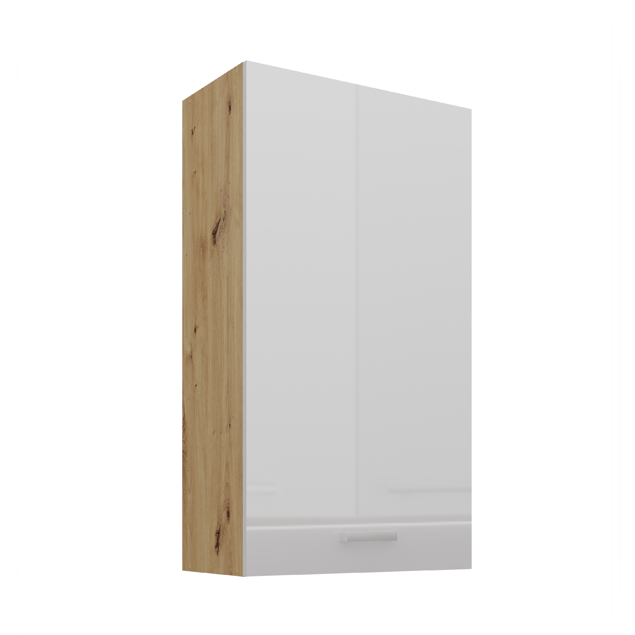 Horní skříňka Artisan 60 G-108 1F Vlastnosti: Materiál Laminovaná dřevotřísková deska o síle 16 mm a PUR HG deska 16 mm Zakončené hrany ABS hrana o síle 1 mm Úchyt Matný kovový stříbrný úchyt Vnitřní barva Vnitřek skříně je bílý Vnitřní uspořádání Tři police Panty / Pojezdy Panty s tlumeným zavíráním • Barevné kombinace Dub artisan a bílý lesk Korpus je v dřevěném dekoru, dvířka v kombinaci dřeva a bílého lesku Dub artisan a cappucino lesk Korpus je v dřevěném dekoru, dvířka v kombinaci dřeva a lesklého cappucina • Rozměry:Šířka:60 cmVýška:108 cmHloubka:31 cmPočet balení:2 krabice • Odkazy na příslušenství ke kuchyňským linkámKompletní nabídka skříněk ke kuchyňské lince ArtisanPracovní deskyPříslušenství ke kuchyním •