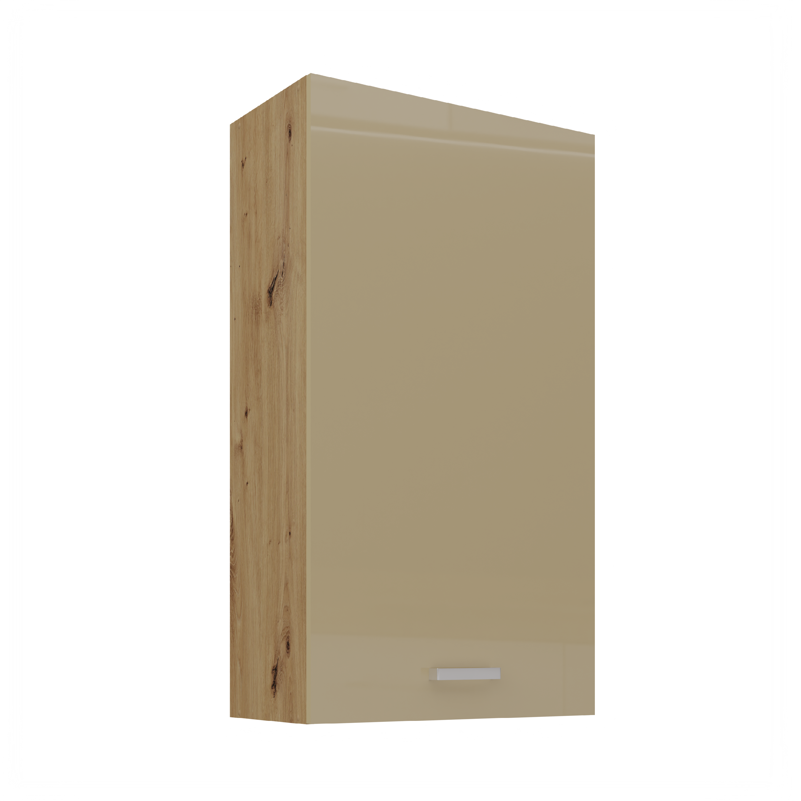 Horní skříňka Artisan 60 G-108 1F Vlastnosti: Materiál Laminovaná dřevotřísková deska o síle 16 mm a PUR HG deska 16 mm Zakončené hrany ABS hrana o síle 1 mm Úchyt Matný kovový stříbrný úchyt Vnitřní barva Vnitřek skříně je bílý Vnitřní uspořádání Tři police Panty / Pojezdy Panty s tlumeným zavíráním • Barevné kombinace Dub artisan a bílý lesk Korpus je v dřevěném dekoru, dvířka v kombinaci dřeva a bílého lesku Dub artisan a cappucino lesk Korpus je v dřevěném dekoru, dvířka v kombinaci dřeva a lesklého cappucina • Rozměry:Šířka:60 cmVýška:108 cmHloubka:31 cmPočet balení:2 krabice • Odkazy na příslušenství ke kuchyňským linkámKompletní nabídka skříněk ke kuchyňské lince ArtisanPracovní deskyPříslušenství ke kuchyním •