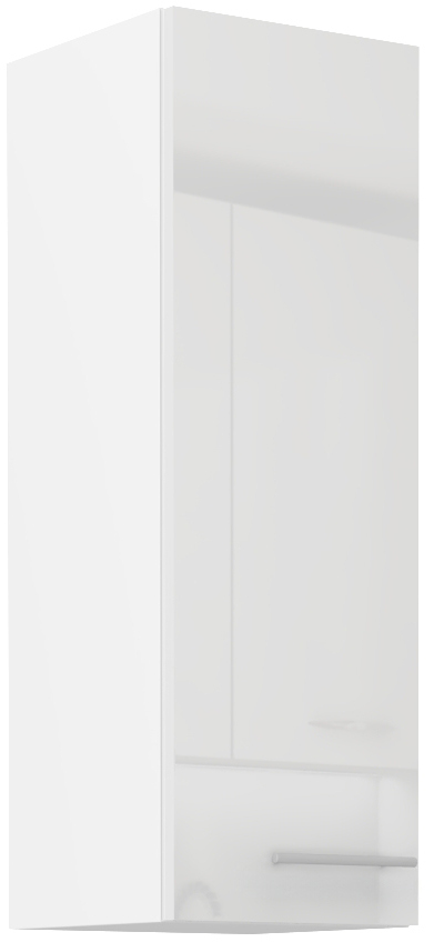 Horní skříňka Lara 30 G-90 1F Vlastnosti: Materiál Laminovaná dřevotřísková deska o síle 16 mm Zakončené hrany ABS hrana o síle 1 mm Úchyt Lesklý kovový stříbrný úchyt Vnitřní barva Vnitřek skříně je bílý Vnitřní uspořádání Tři police Panty / Pojezdy Panty s tlumeným zavíráním • Barevná kombinace Bílá matná Korpus Cappucino lesk Dvířka Šedý lesk Dvířka Bílá lesklá Dvířka • Rozměry:Šířka:30 cmVýška:90 cmHloubka:31 cmPočet balení:2 krabice • Odkazy na příslušenství ke kuchyňským linkámKompletní nabídka skříněk ke kuchyňské lince LaraPracovní deskyPříslušenství ke kuchyním •