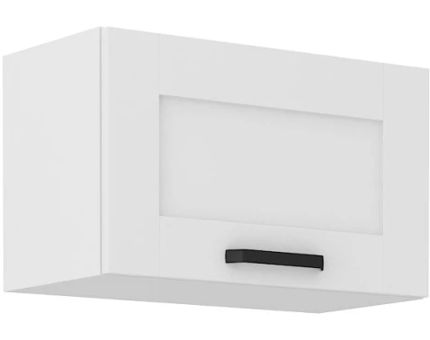Horní výklopná kuchyňská skříňka o šířce 60 cm z programu Luna v jednoduchém, funkčním a zároveň moderním stylu, v matně bílém provedení.