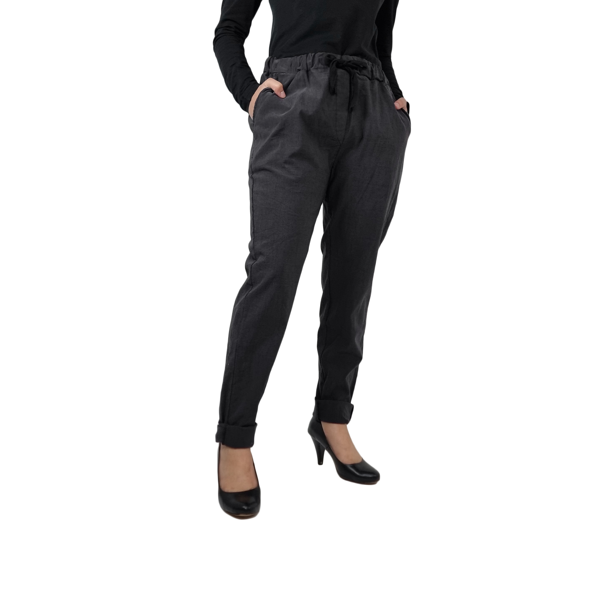 Dámské stylové kalhoty WRUNG. Kalhoty jsou jednobarevné a strečové a jsou z velice příjemného materiálu. V pase šňůrka ke stažení. Vhodné do přechodného jarního a podzimního období.