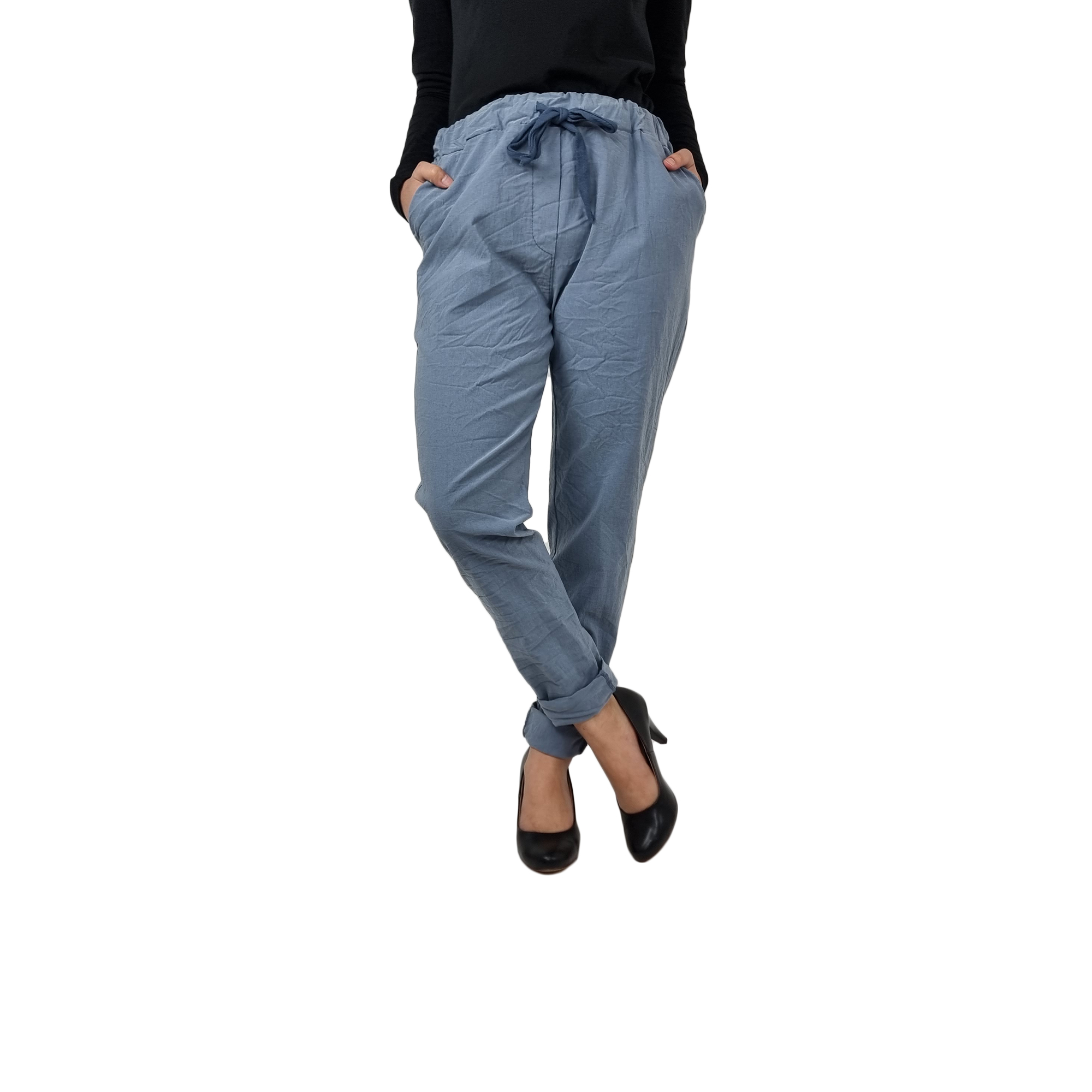Dámské stylové kalhoty WRUNG. Kalhoty jsou jednobarevné a strečové a jsou z velice příjemného materiálu. V pase šňůrka ke stažení. Vhodné do přechodného jarního a podzimního období.