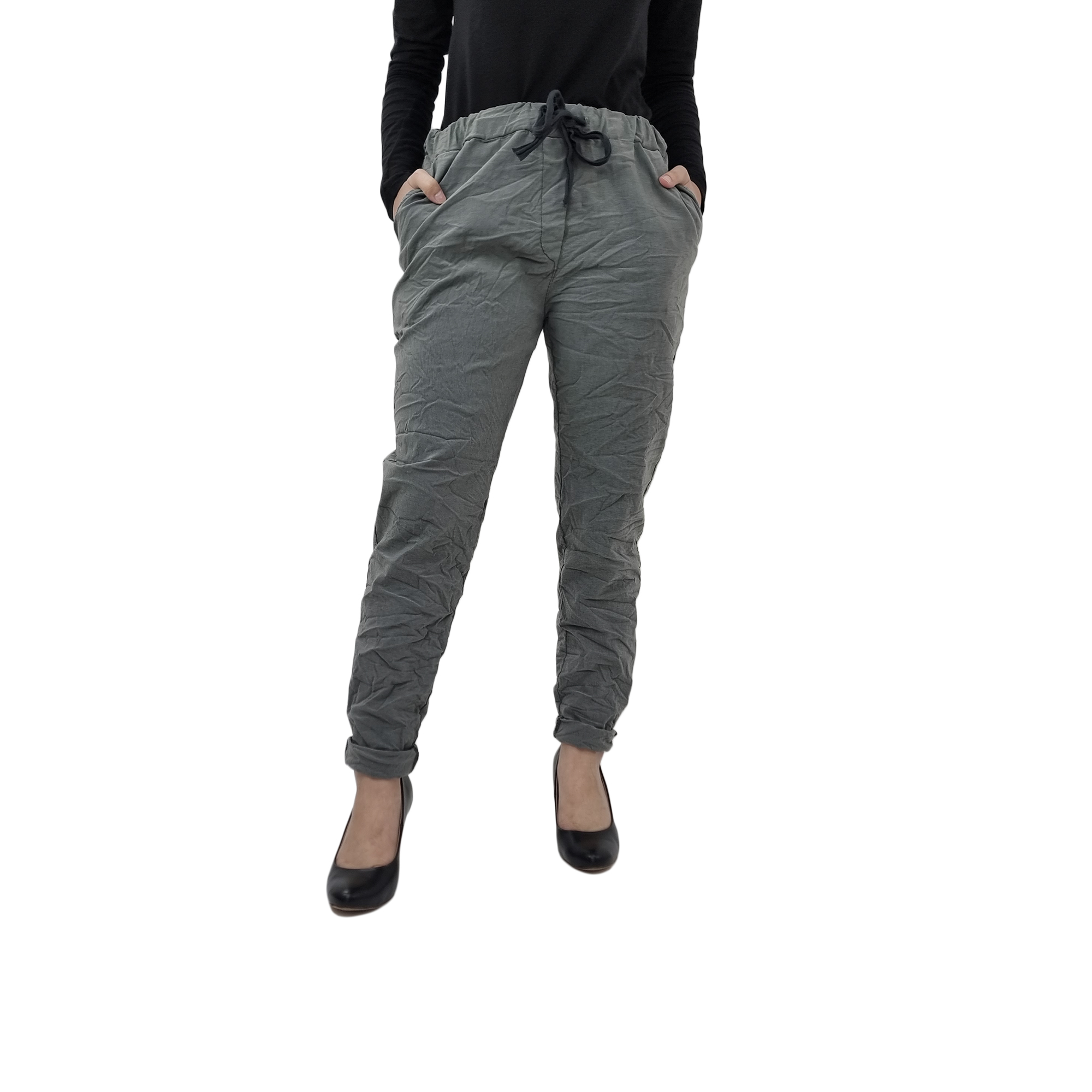 Dámské stylové kalhoty WRUNG. Kalhoty jsou jednobarevné a strečové a jsou z velice příjemného materiálu. V pase šňůrka ke stažení. Vhodné do přechodného jarního a podzimního období.