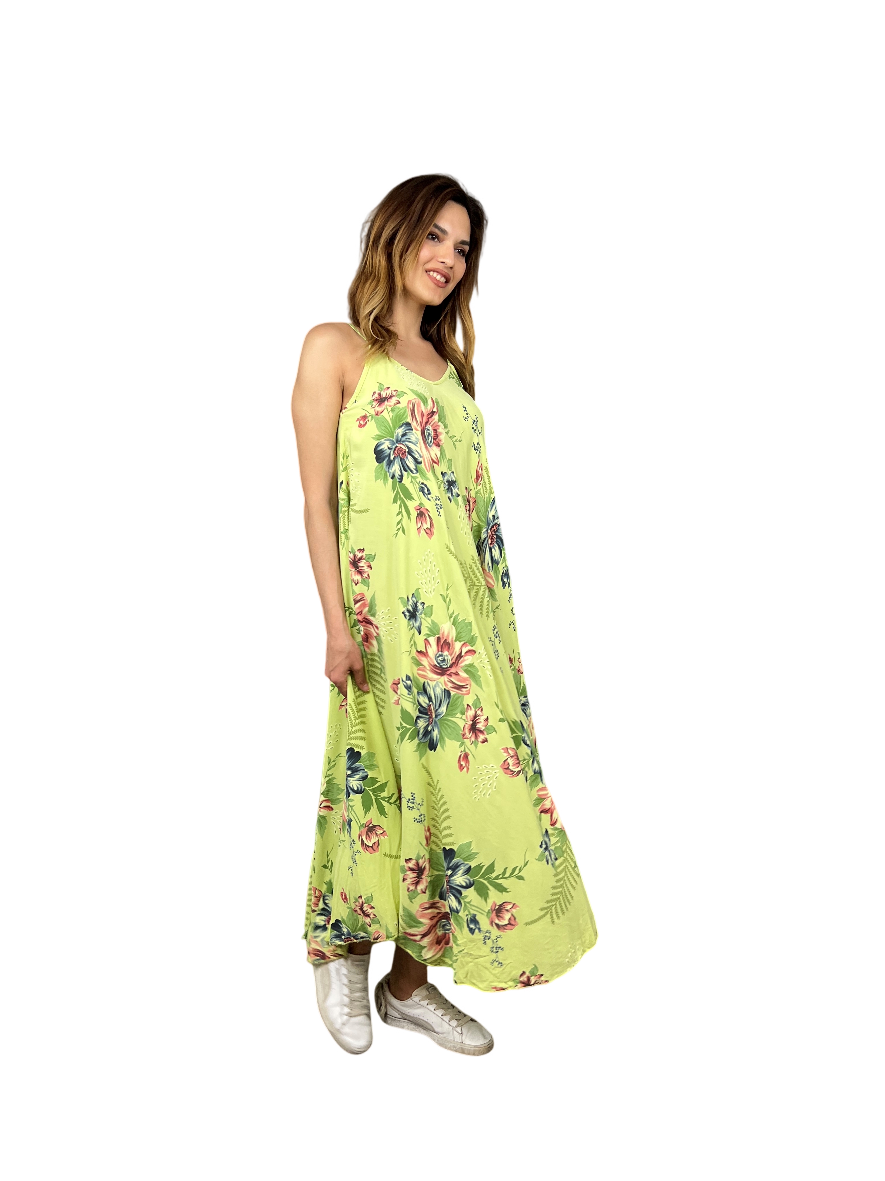 Letní šaty Kylee bez rukávů. Jsou dlouhé s květinovým potiskem. Vyrobeno z viskózy, jsou pohodlné a snadno se nosí.