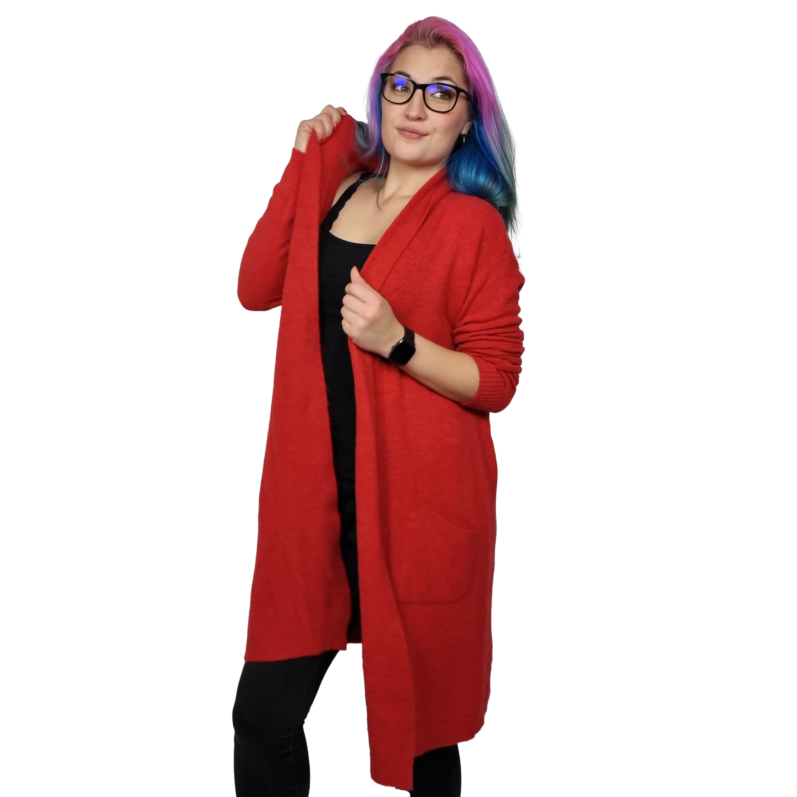 Dámský stylový jednobarevný kardigan ve střední délce. Kardigan je z velice příjemného materiálu. Vhodný do přechodného období.