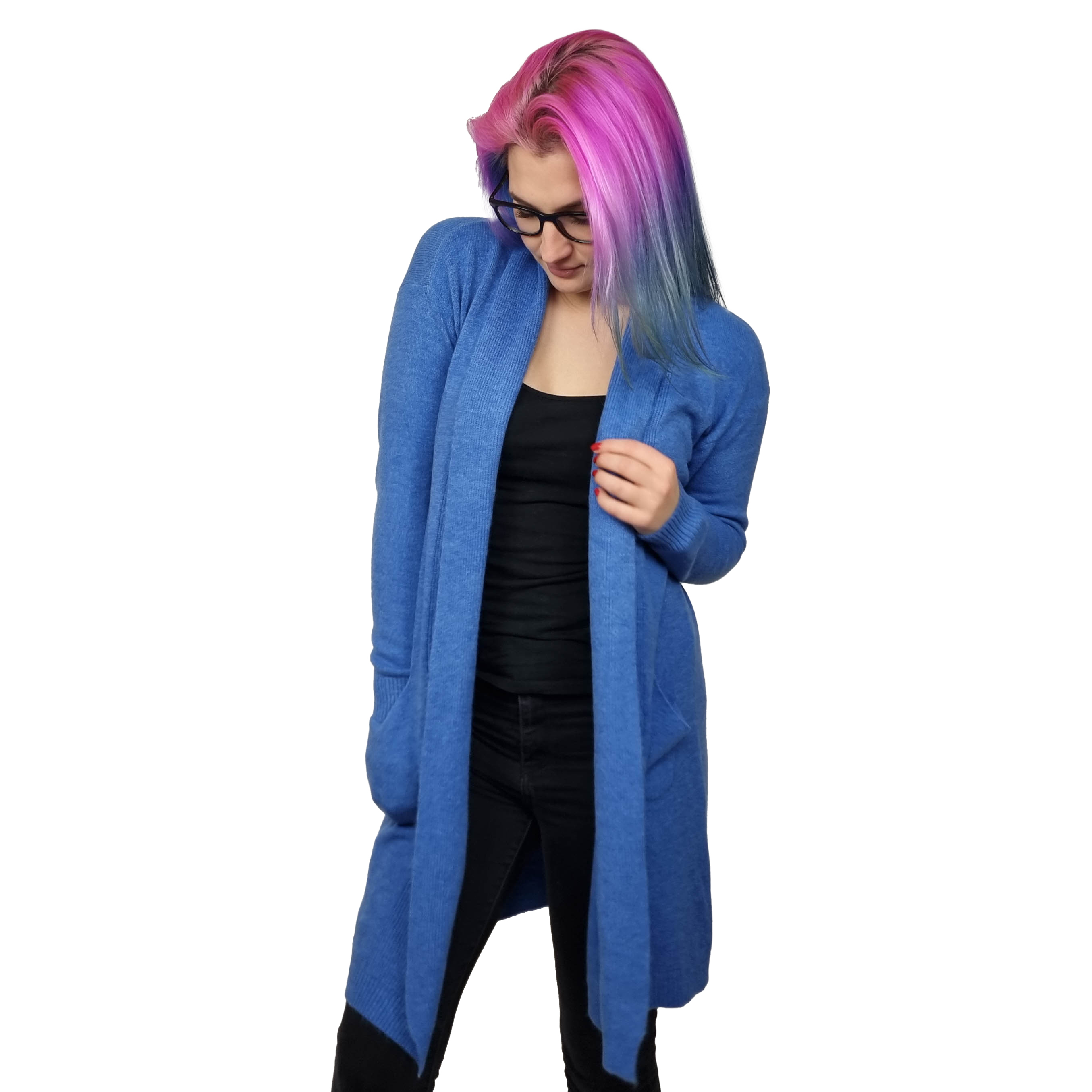 Dámský stylový jednobarevný kardigan ve střední délce. Kardigan je z velice příjemného materiálu. Vhodný do přechodného období.