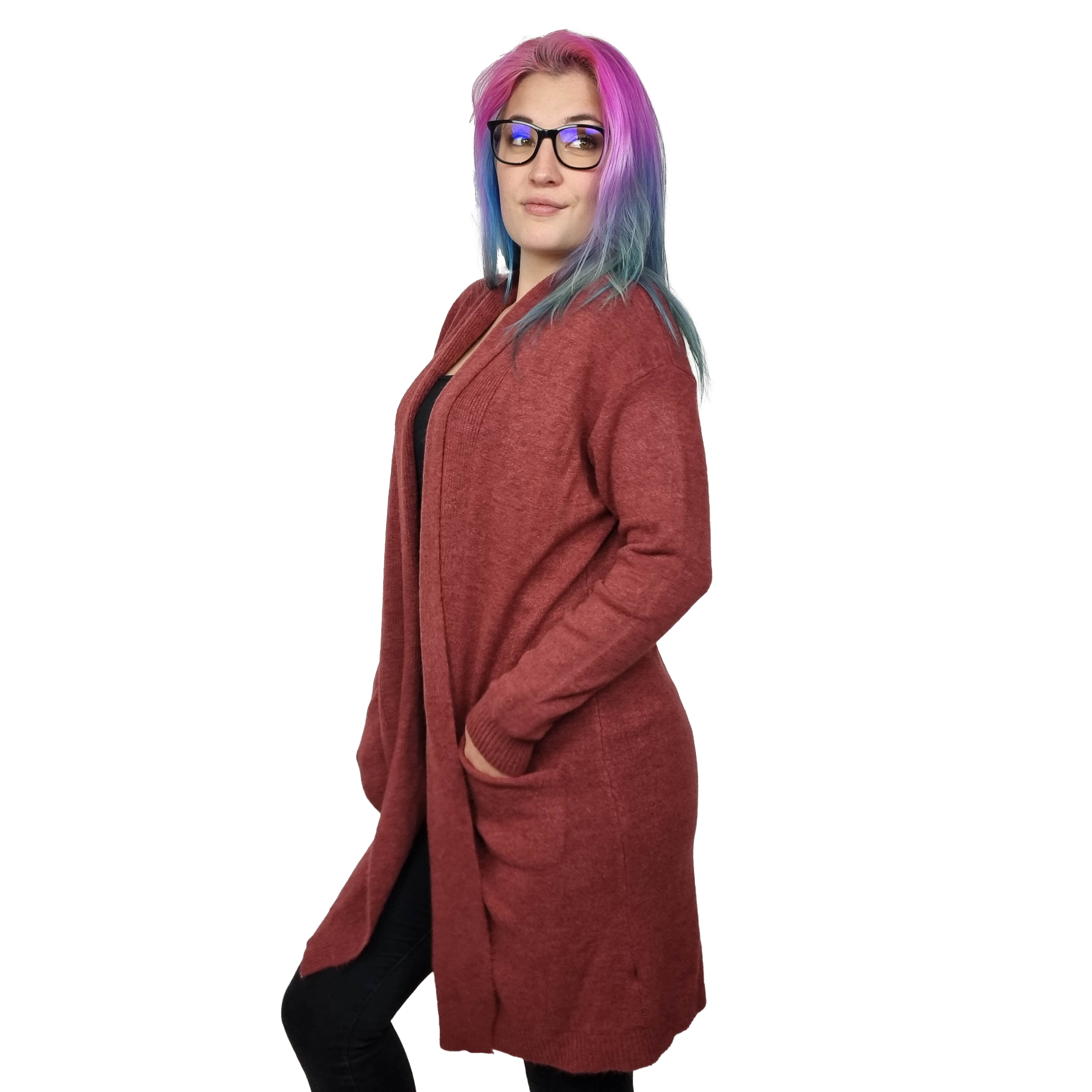 HOSH Dámský kardigan ve střední délce Velikost: UNI, Barva: Vínová
