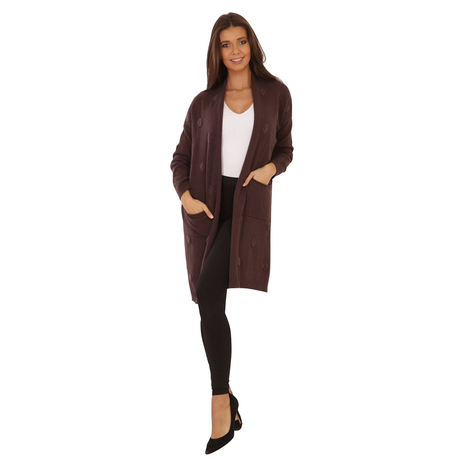 Dámský kardigan s puntíky z velice příjemného a hřejivého materiálu. Vhodný do přechodného podzimního období.