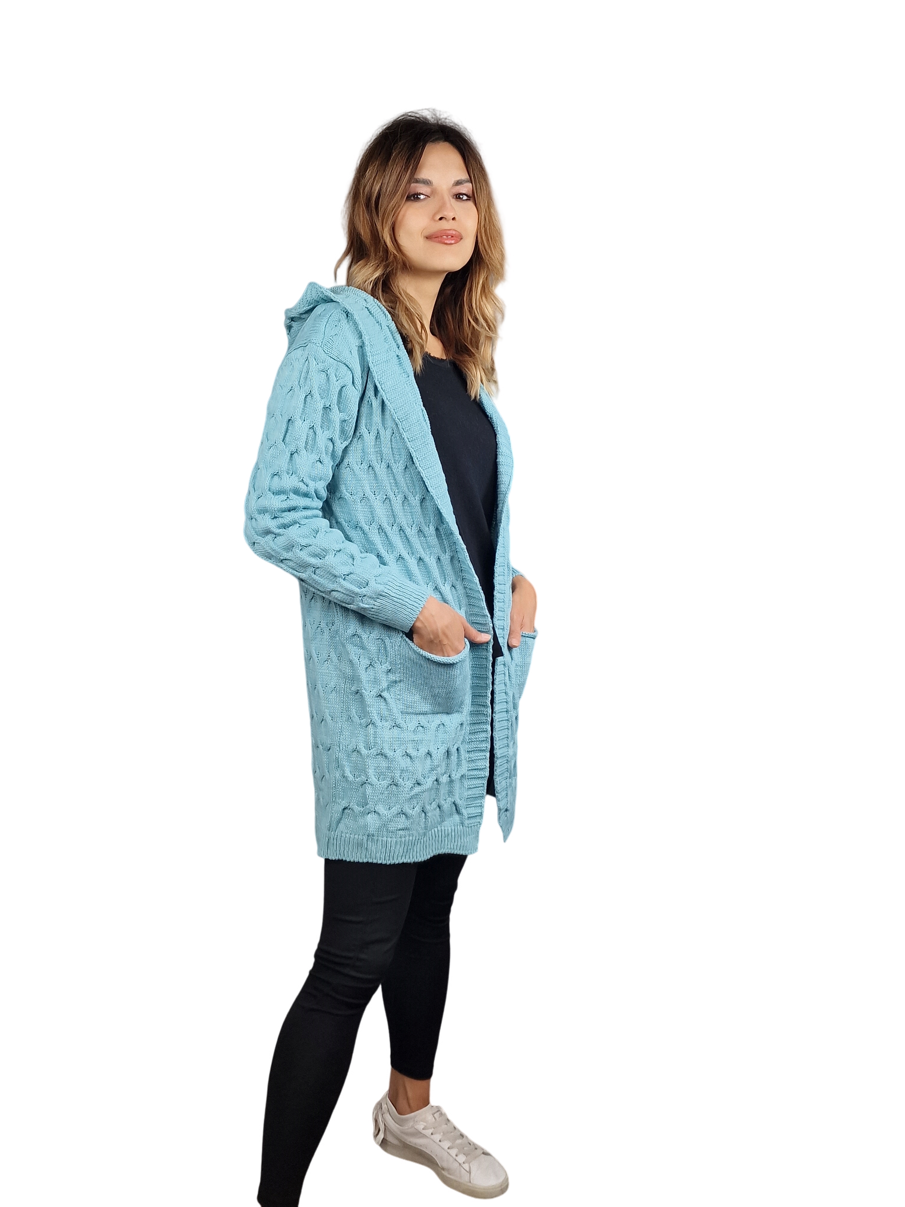 Kardigan Lee je kabelový svetr jednobarevný s kapsami a kapucí. Tento svetr je nejen teplý a pohodlný, ale také stylový a nadčasový. Vytvořen z kvalitního materiálu, poskytuje maximální pohodlí a ochranu před chladným počasím. Jeho jedinečný design s kabelovým vzorem dodává svetru na eleganci a vynikajícím vzhledu. Díky kapsám budete mít všechny důležité věci stále po ruce. Kapuce pak zajišťuje další vrstvu ochrany proti větru a chladu. Kardigan Lee je ideální volbou pro každodenní nošení i pro speciální příležitosti. Přidejte tento stylový kousíček do svého šatníku a užijte si pohodlí a eleganci na každém kroku.