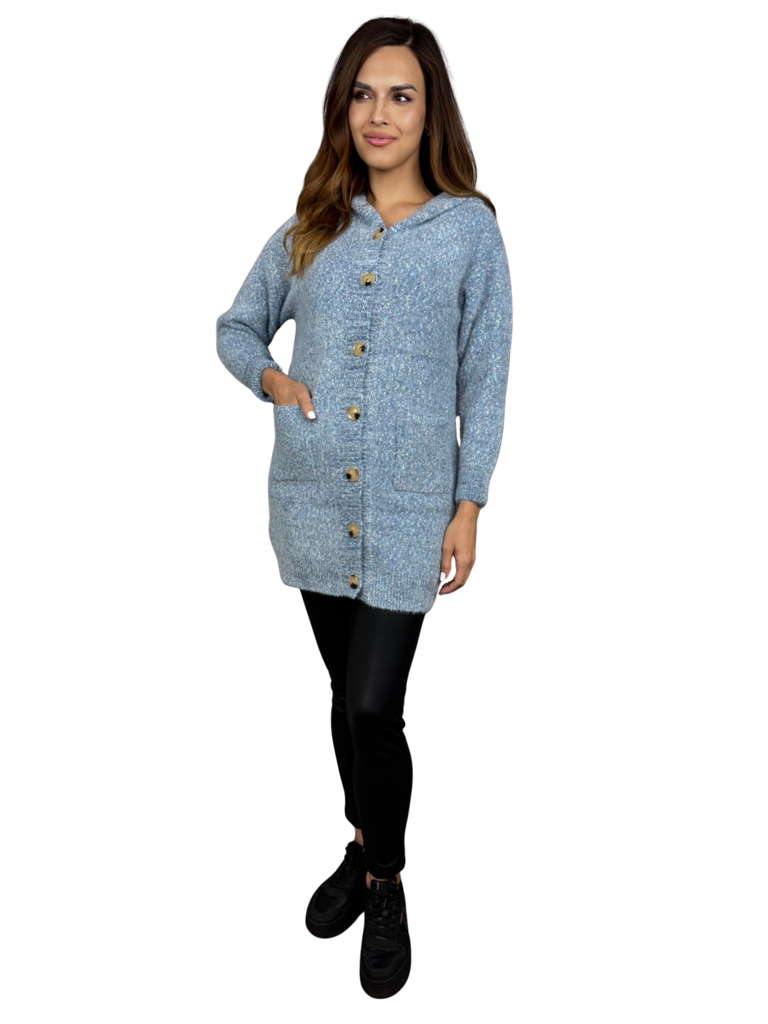 Kardigan Lior je stylový a praktický kousek, který spojuje eleganci a pohodlí. Díky kapuci, prodlouženému střihu a melírovanému vzoru se stane základem tvého šatníku pro chladnější dny.