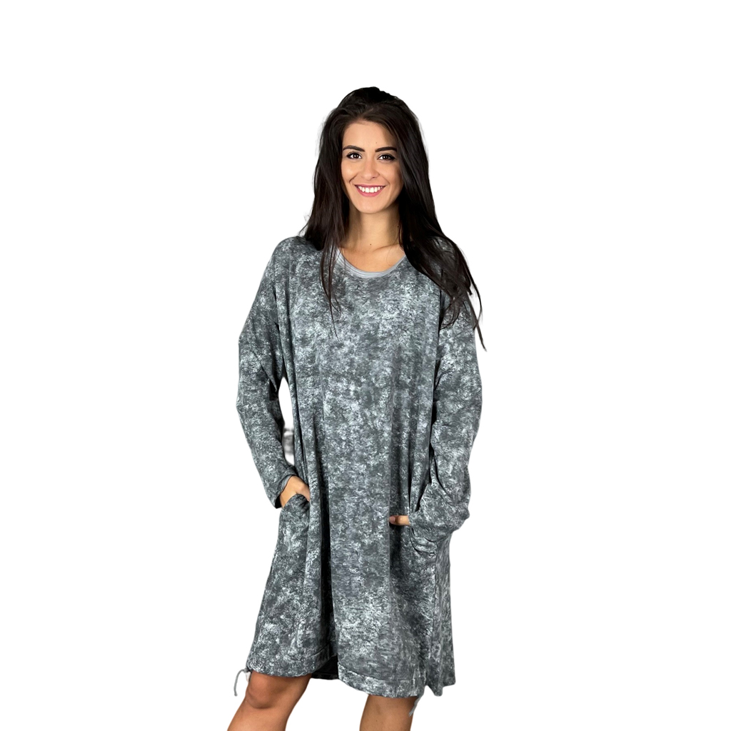 Batikované mikinové šaty BLAIR. Mají velice příjemný materiál a stylový design. Šaty mají délku ke kolenům a kapsy po stranách.