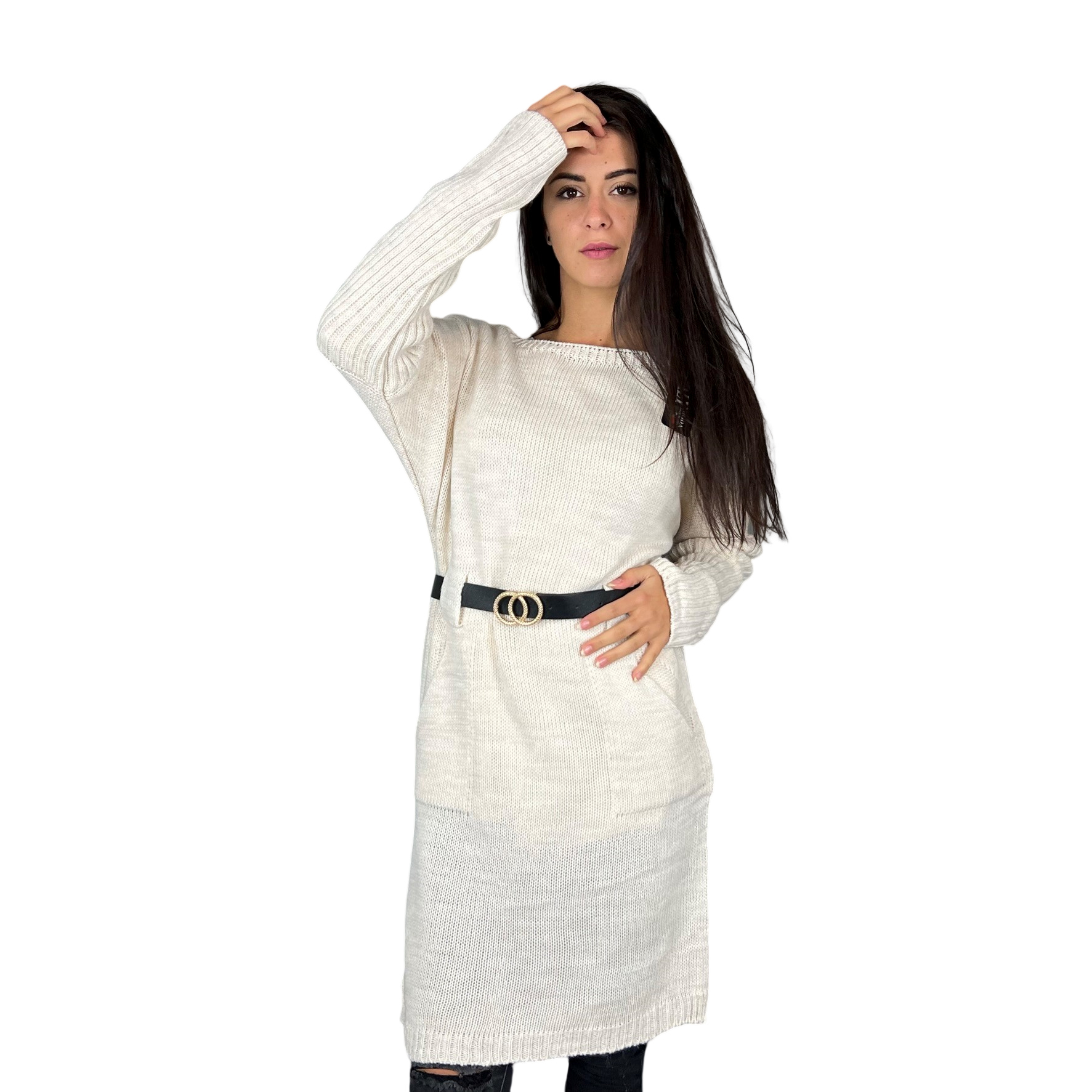 Sexy pletené šaty vysokým výstřihem Einheitsgroesse