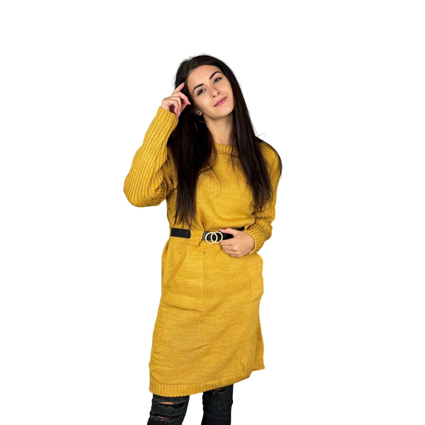 HOSH Pletené šaty ELLIS s páskem Barva: Hořčicová