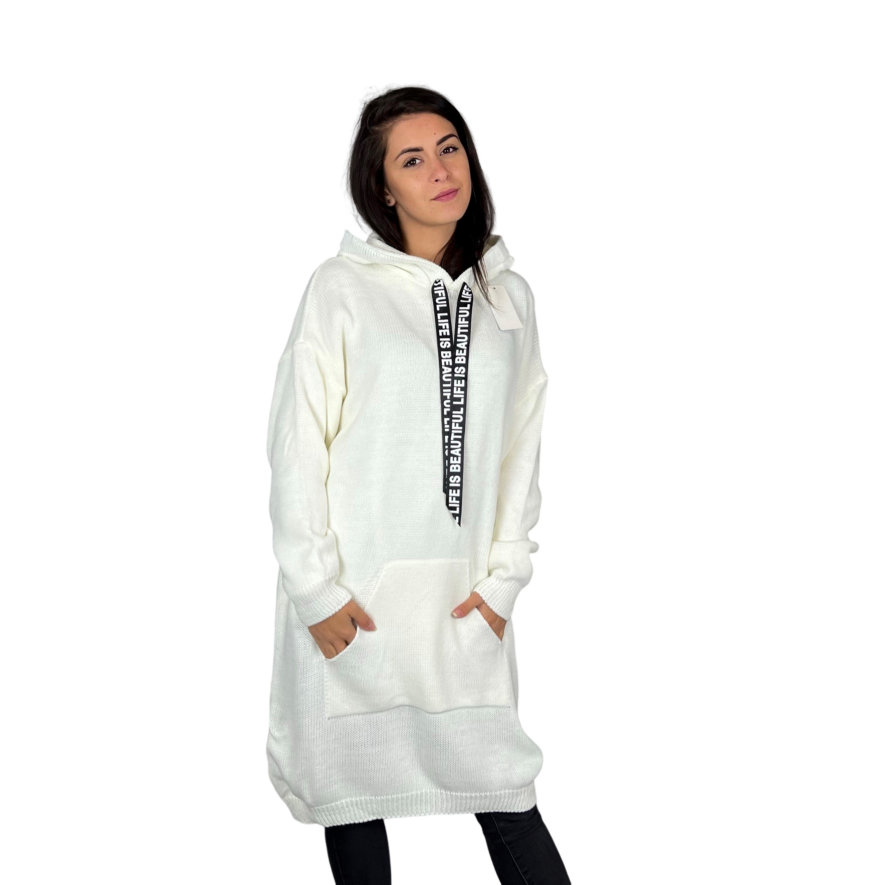 HOSH Pletené šaty EVELYN s kapucí Barva: Bílá