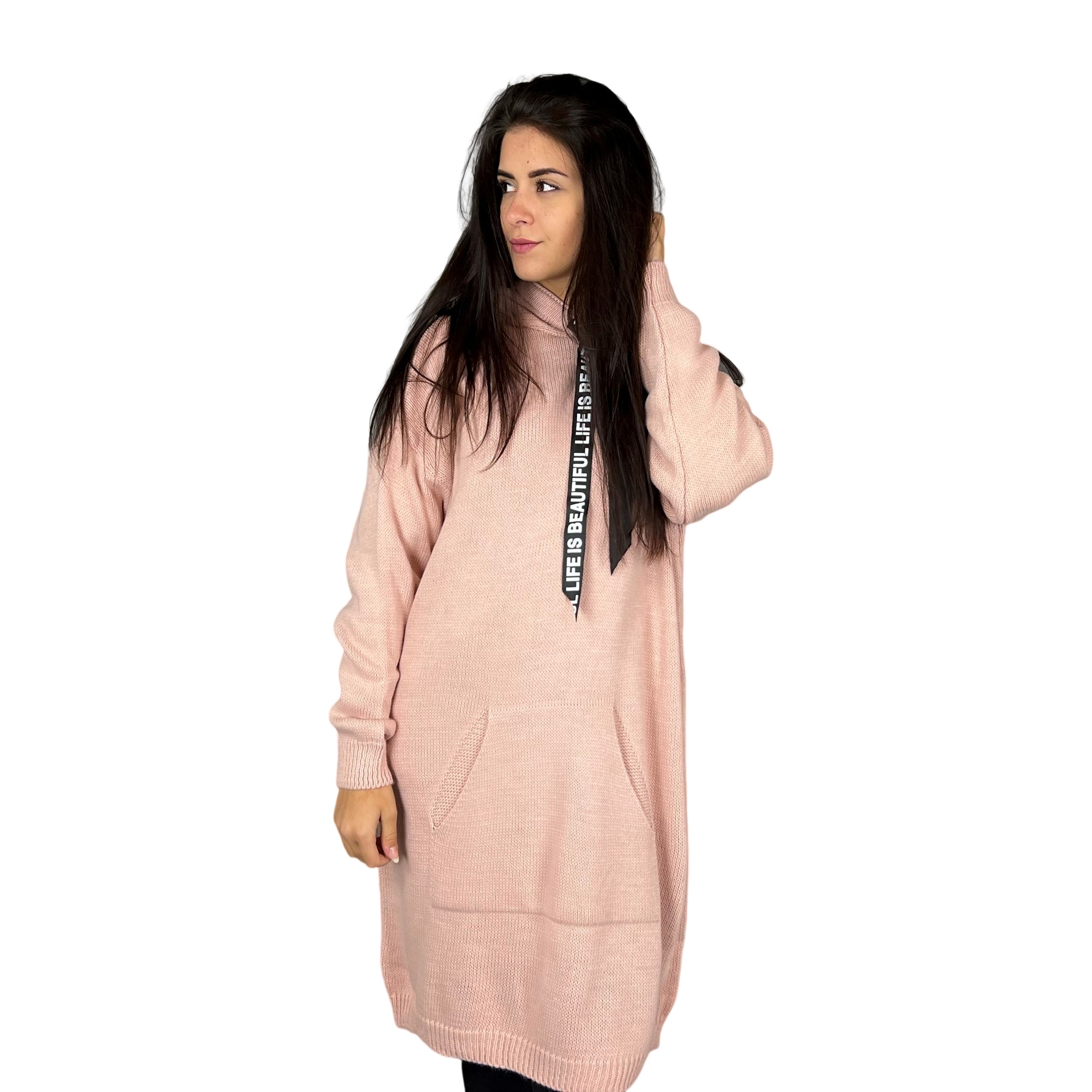 HOSH Pletené šaty EVELYN s kapucí Barva: Starorůžová