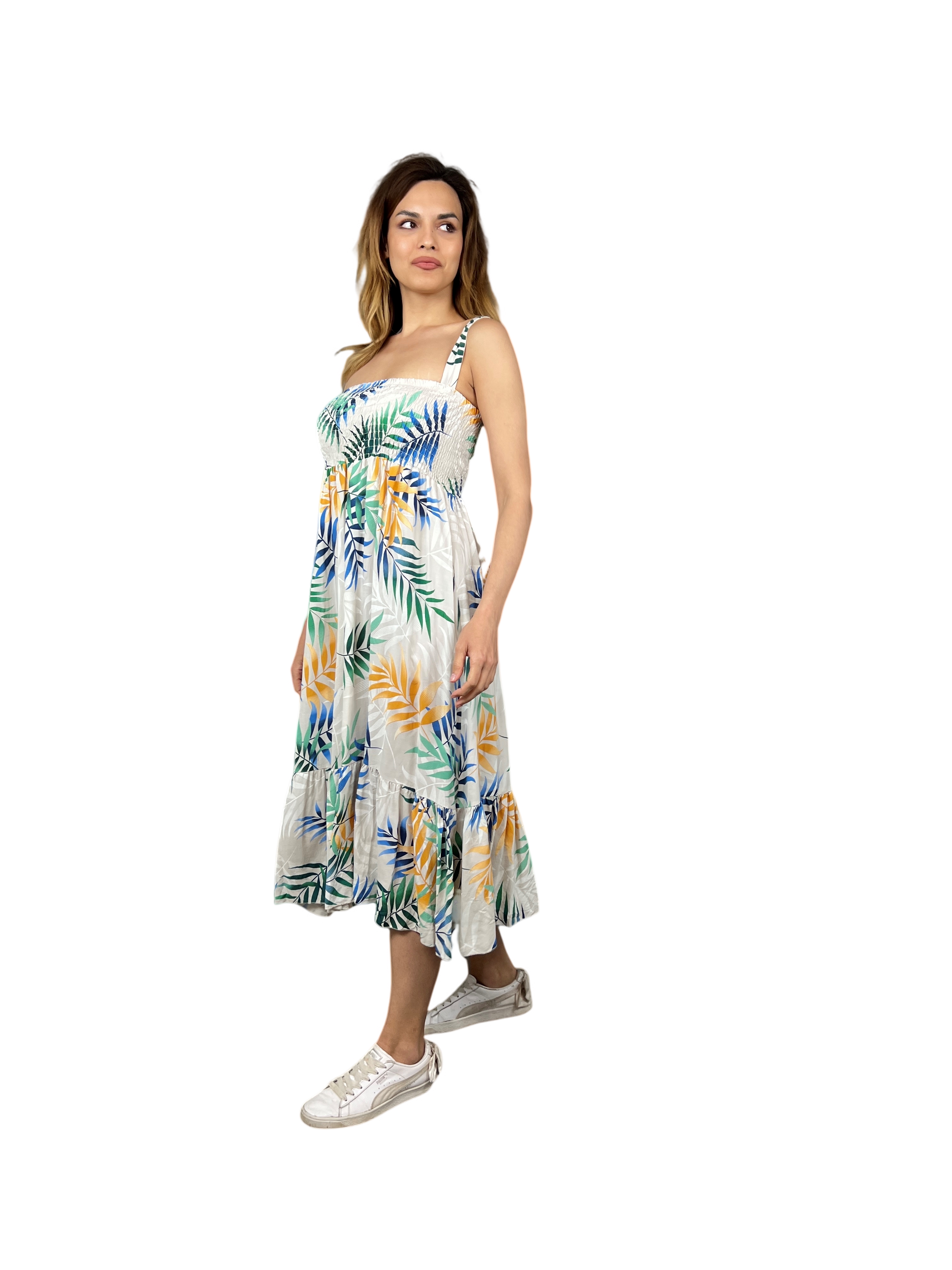 Představujeme dlouhé šaty Elora - nezbytný doplněk pro ženy, které se v letní sezóně zajímají o módu. Díky provedení bez rukávů a elastickému hrudníku vám budou pohodlně sedět, zatímco úžasný letní květinový potisk dodá vašemu outfitu nádech elegance. Krásné letní barvy jistě upoutají pozornost, ať už se vydáte kamkoli, a tyto šaty se tak hodí pro každou příležitost ať už vyrazíte na piknik nebo na pláž. Dlouhé šaty Elora jsou vyrobeny z vysoce kvalitních materiálů a jistě se stanou základem vašeho šatníku na dlouhá léta. Nenechte si ujít tyto elegantní a stylové šaty!