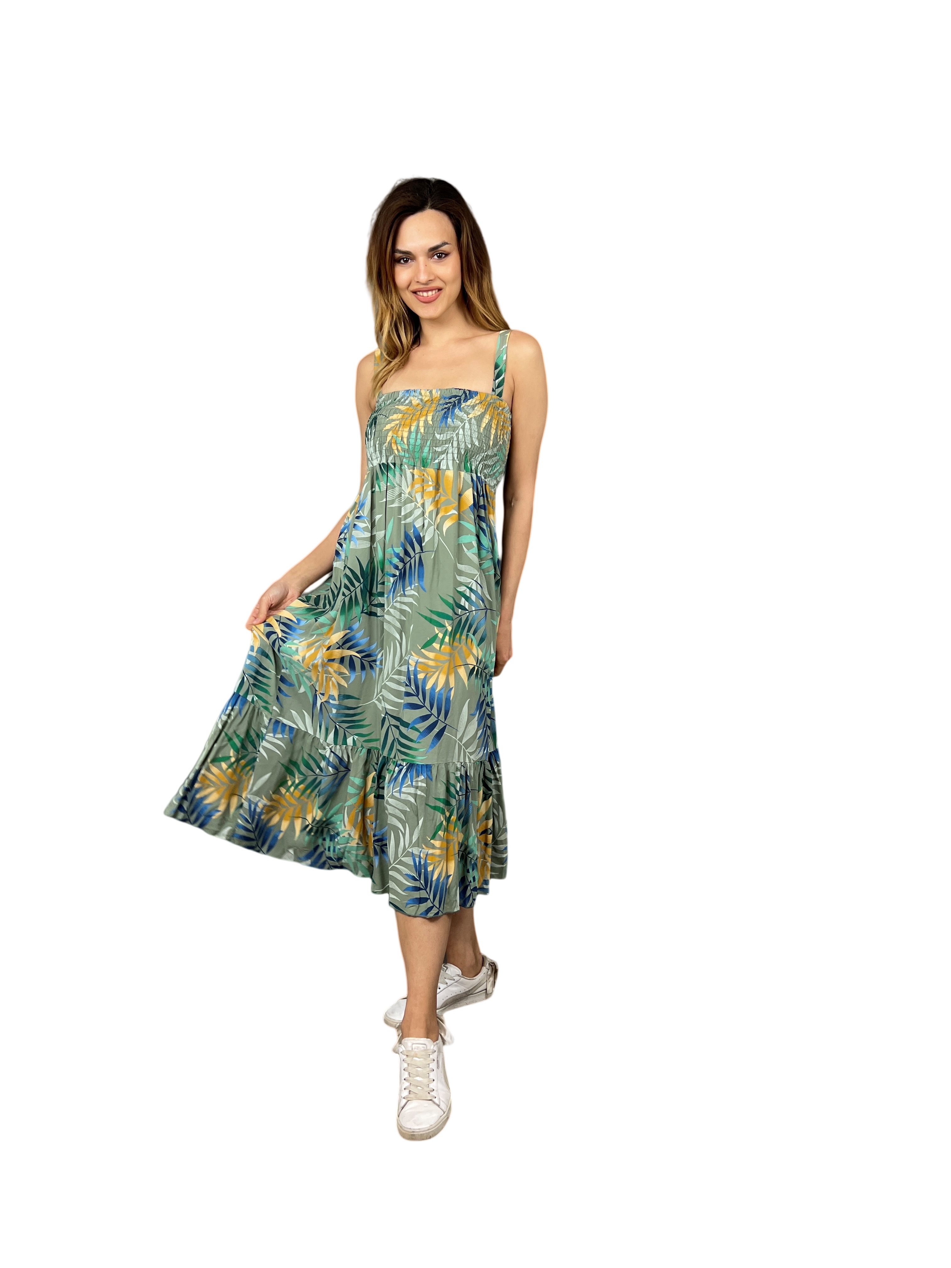 Představujeme dlouhé šaty Elora - nezbytný doplněk pro ženy, které se v letní sezóně zajímají o módu. Díky provedení bez rukávů a elastickému hrudníku vám budou pohodlně sedět, zatímco úžasný letní květinový potisk dodá vašemu outfitu nádech elegance. Krásné letní barvy jistě upoutají pozornost, ať už se vydáte kamkoli, a tyto šaty se tak hodí pro každou příležitost ať už vyrazíte na piknik nebo na pláž. Dlouhé šaty Elora jsou vyrobeny z vysoce kvalitních materiálů a jistě se stanou základem vašeho šatníku na dlouhá léta. Nenechte si ujít tyto elegantní a stylové šaty!