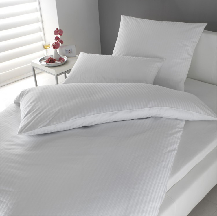 Hotelové povlečení Atlas Grádl Bílé Hotelové povlečení Atals Grádl je vyrobeno z česaných přízí v atlasové vazbě, ustáleně se u nás nazývá Atlas GrádlNejrozšířenějším vzorem, který vytváří právě použitá atlasová vazba je proužekMy Vám nabízíme Atlas Grádl s 2 cm širokými proužky, v gramáži 170 g/m², v bílé barvě. Povlečení v rozměru 140x200/70x90 cm má hotelový uzávěr s překládkou 20 cm. Hotelové povlečení Atlas Grádl je určeno pro hotely, penziony a jiné ubytovací zařízení, kde je vyžadována vysoká kvalita materiálu i zpracování, a to vzhledem k vysoké zátěži, která je pro tyto provozovny typická.Odstíny barev obrázků se mohou lehce lišit v závislosti na nastavení vašeho monitoru.