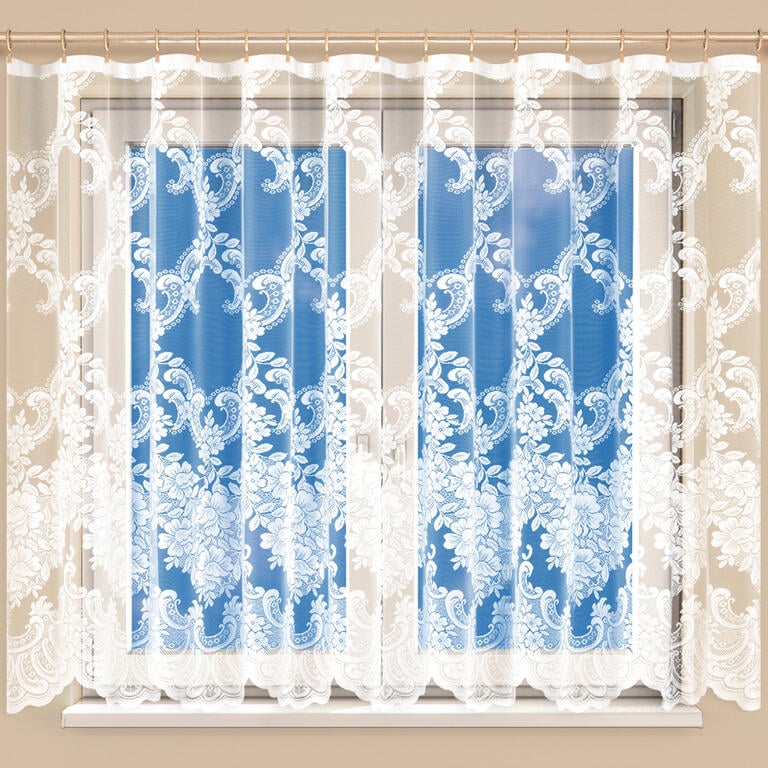 Záclona HENRIETA vás na první pohled zaujme líbivým květinově ornamentálním vzorem, který zakončuje výrazná bordura. Hotová neboli kusová záclona je střižená přesně na míru a má začištěné okraje. Tuto záclonu není třeba nijak upravovat, stačí ji jenom rozbalit a pověsit na žabky. Tuto záclonu si můžete pořídit jak v klasickém provedení, tak v kompletu pro okno a balkonové dveře.