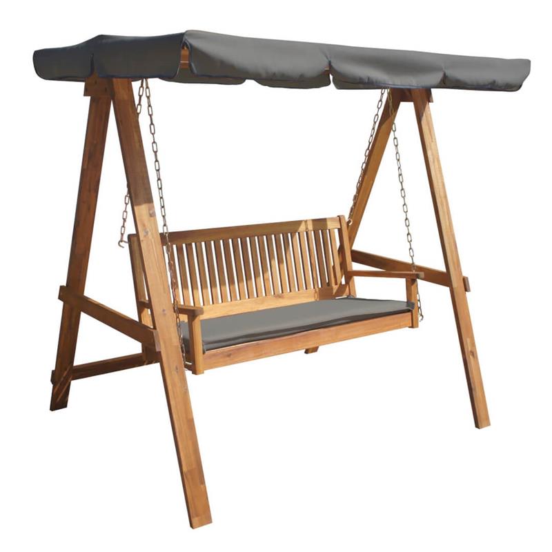 Dlouhodobě žádaná a oblíbená dvoumístná houpačka! Vaši bezpečnost zajišťují řetízky obalené krycím pouzdrem z PVC a středové upevnění ke konstrukci houpačky. Součástí houpačky je stříška a polstr. Houpačka je ideální a stylový doplněk do Vaší zahrady pro dokonalou relaxaci. Houpačka je vyrobena z olejované akácie. Houpačka disponuje certifikátem FSC®. Specifikace: Dřevina: akácie Povrch: olej Barva polstru a stříšky: šedá Rozměry v/š/hl: 1650 x 1680 x 1230 mm Hmotnost: 38 kg Exotická dřevina z rychle rostoucích stromů tropických lesů Východní Asie a Jižní Ameriky. Má jemnou plamennou texturu, je v olivově hnědém až šedohnědém odstínu s tmavšími žlutými pruhy. Akácie má vysokou odolnost proti stárnutí a biologické degradaci. Pro širokou škálu svých užitných vlastností je vhodná právě pro výrobu zahradního nábytku. Hustota dřeva 640 až 800 kg/m3. Povrchová úprava zahradního nábytku je provedena olejem, který chrání nábytek proti působení povětrnostních vlivů a přimořuje povrch na tmavý odstín. Dřevo je přírodní materiál, jeho kresba a zbarvení je na každém kusu nábytku unikátní. Nábytek je vyráběn tak, aby byl vhodný pro použití ve středoevropských podmínkách, přesto je nutné o něj pečovat a udržovat jej.
