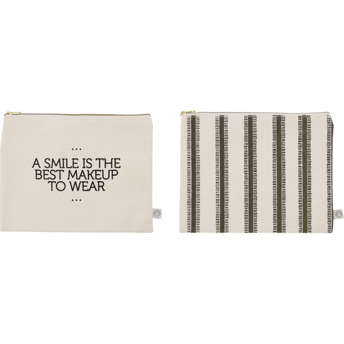 Krémově bílá barva s černým potiskem ve dvou variantách je doplněna stříbrným zipem. Bude pěkným doplňkem na cestách i doma v koupelně, kde poslouží jako praktický odkládací prostor pro kosmetické potřeby, štětečky apod.