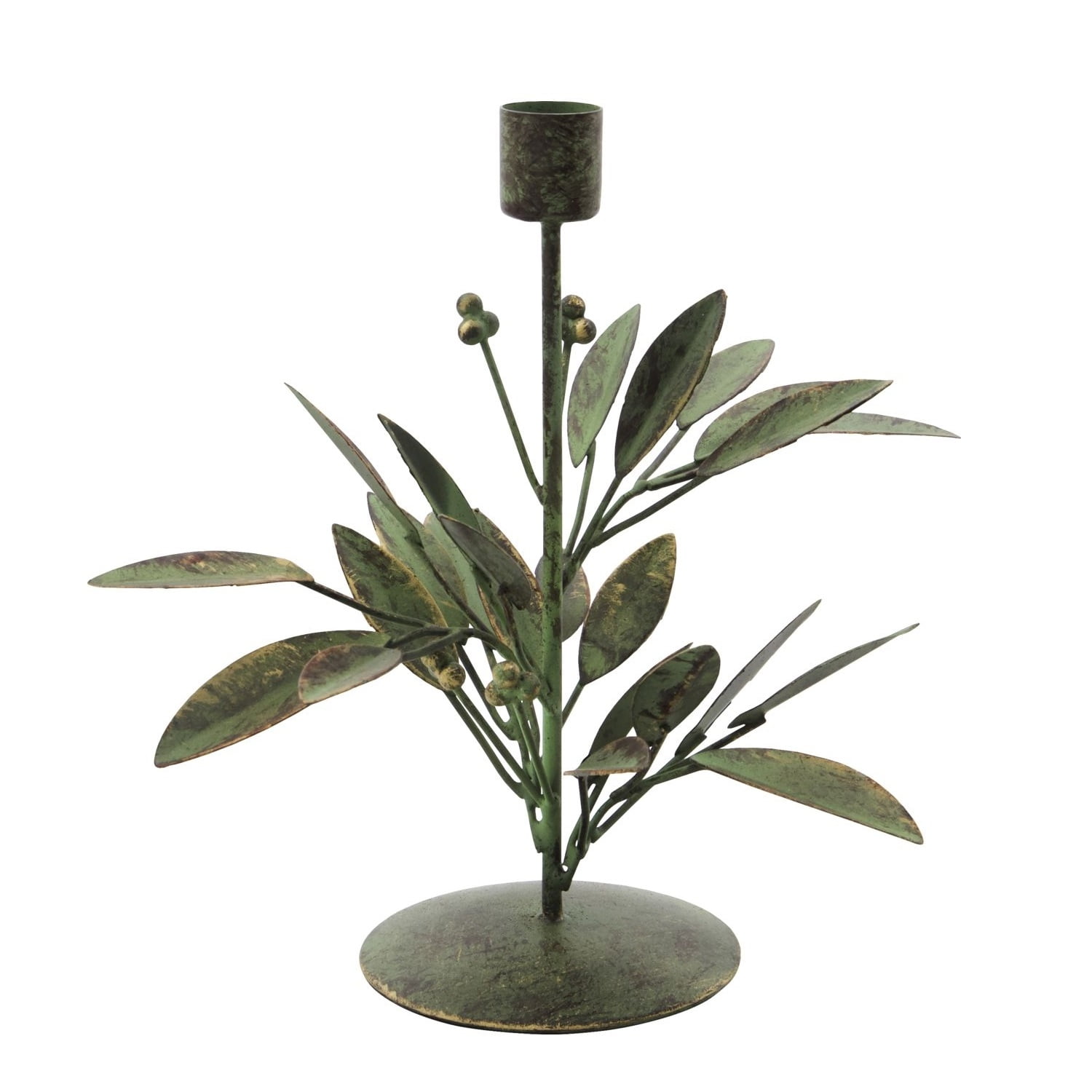 Tento rostlý svícen vnáší do vašeho domova jemnou eleganci, díky svému jemně zelenému povrchu s unikátní patinou, drobnými lístky a bobulkami.