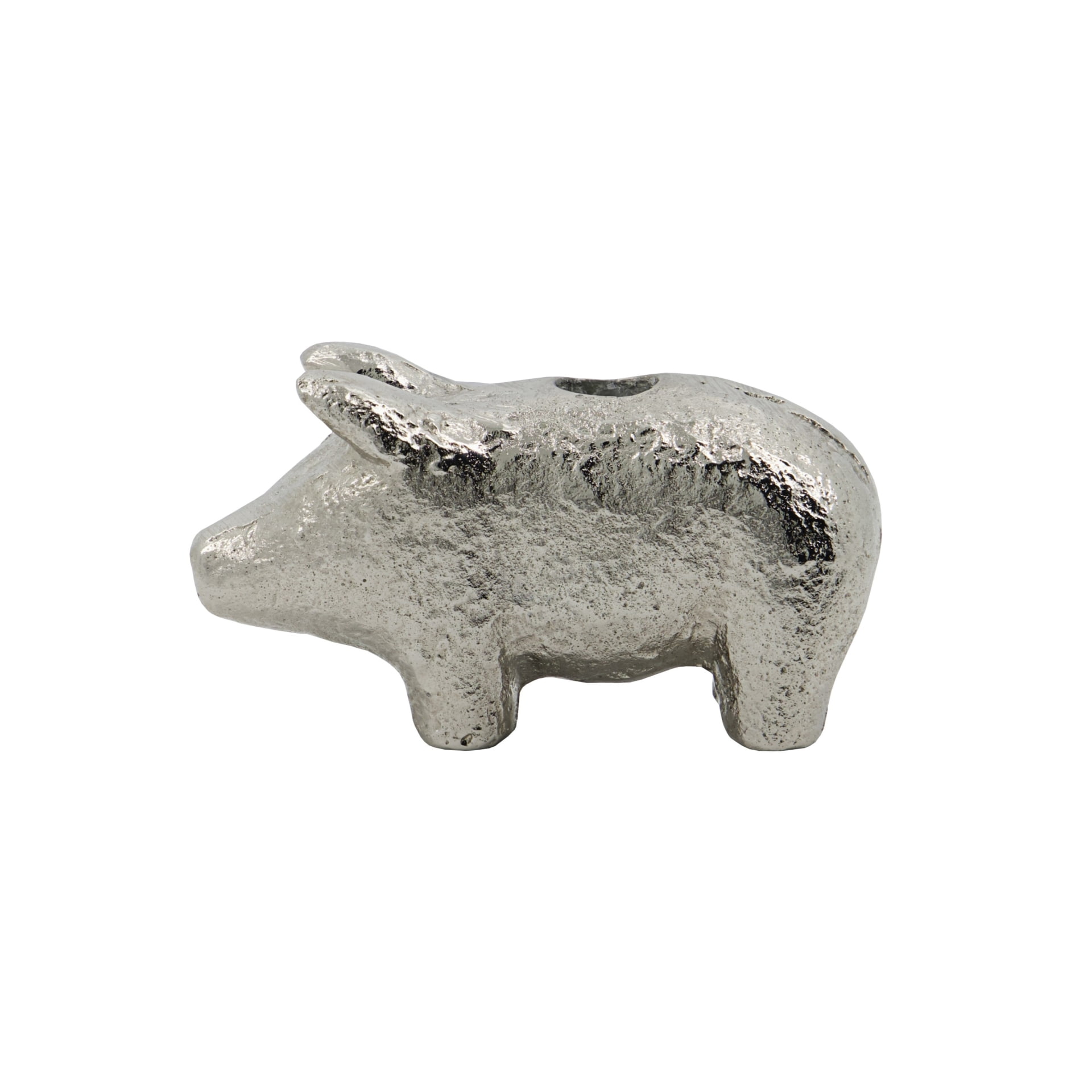 House Doctor Kovový svícen Pig Antique Silver, stříbrná barva, kov. Dejte své vánoční výzdobě ležérní a nepředvídatelný šmrnc s tímto ručně vyrobeným svícnem.