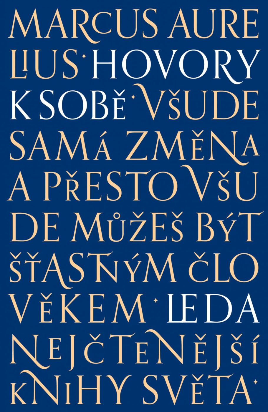 "Vypadl proud, ve tmě nejistě tápeme po něčem pevném… vtom se světlo znovu rozzáří a nejistota je ta tam. Totéž se může odehrát v životě: svět se stane srozumitelný, lidé známí a blízcí, roky utopené v negativních emocích se rozplynou…Jako průvodce na cestu za světlem se nabízí filosof a císař Marcus Aurelius. Nový, živoucí překlad jeho úvah a meditací je jako první opatřen rejstříkem, který pomůže rychle najít, co nás zrovna trápí a zajímá – ať už jde o nastolení duševního klidu nebo spokojenosti se životem, hledání životního cíle, vhled do záležitostí duše a různých jejích stavů. O jakékoli moudré ponaučení, jsme-li právě nespokojení s vlastním osudem, když nás trápí otázky života, pravdy, rozumu, úspěchu, štěstí, smrti, když čelíme zlu nebo když váháme, jestli se můžeme otevřít dobru…"