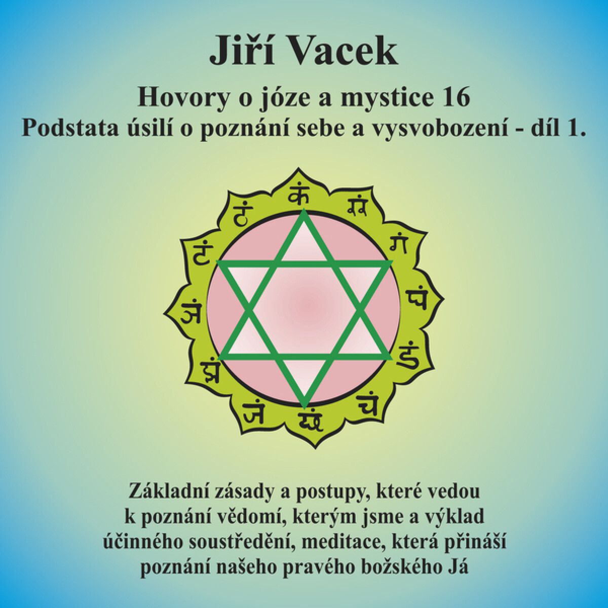 Audiokniha: Podstata úsilí o poznání sebe a vysvobození - díl 1. Objasňuje základní zásady a postupy vedoucí k poznání vědomí, kterým jsme a výklad účinného soustředění, meditace přinášející poznání našeho pravého božského Já. Nejedná se o studiovou nahrávku.